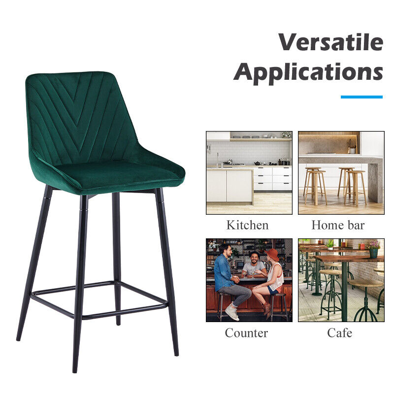2x Velvet Green Bar Stool Kitchen Counter Breakfast Chair Pub Restaurant Cafe