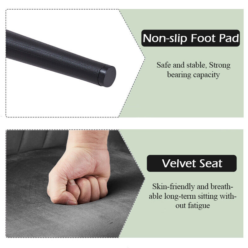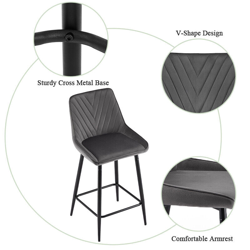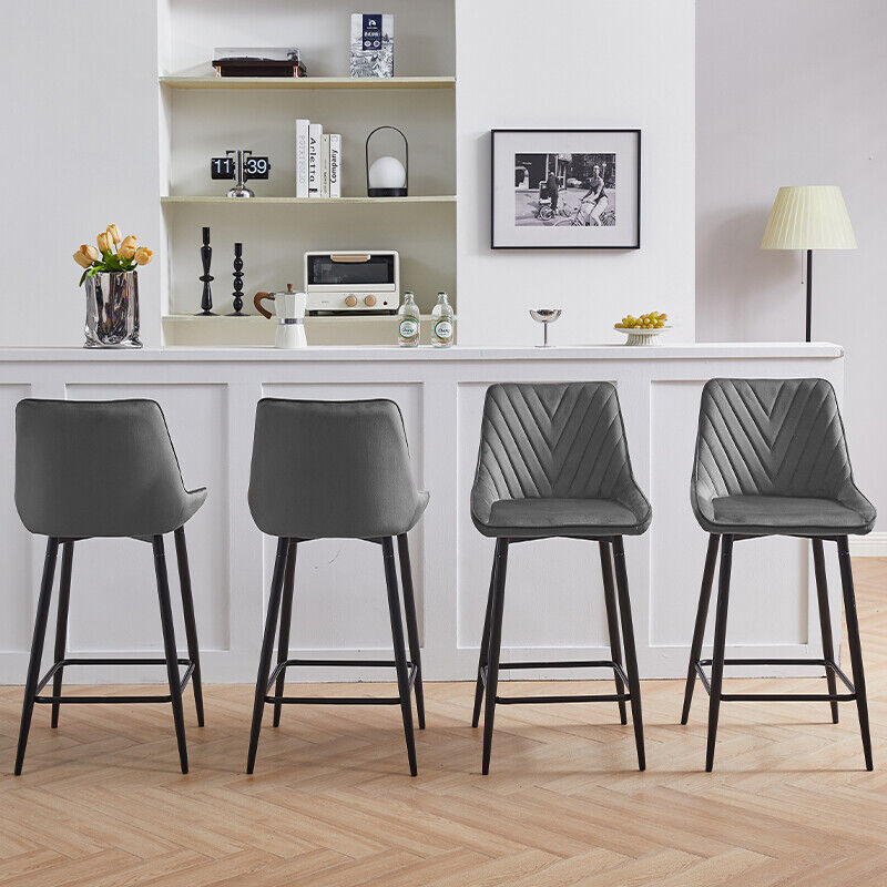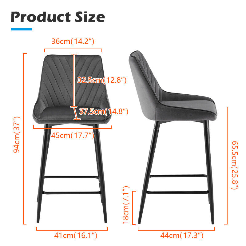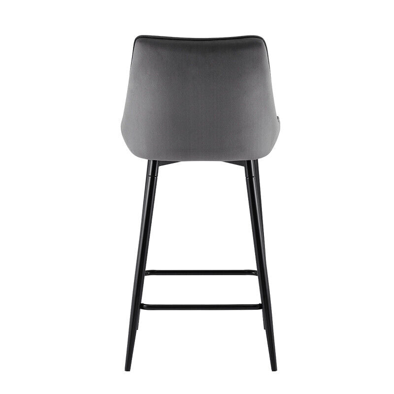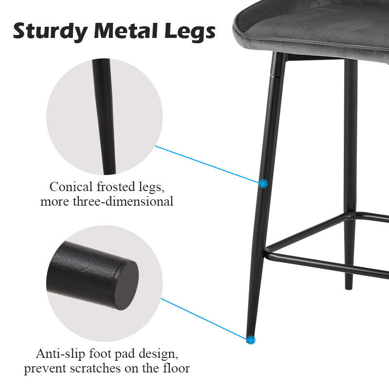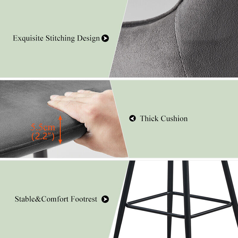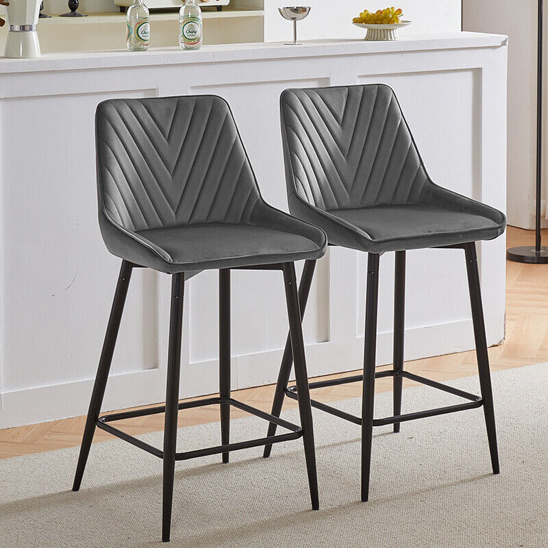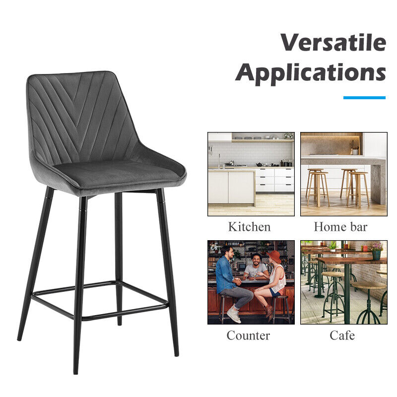 2x Velvet Grey Bar Stool Kitchen Counter Breakfast Chair Pub Restaurant Cafe