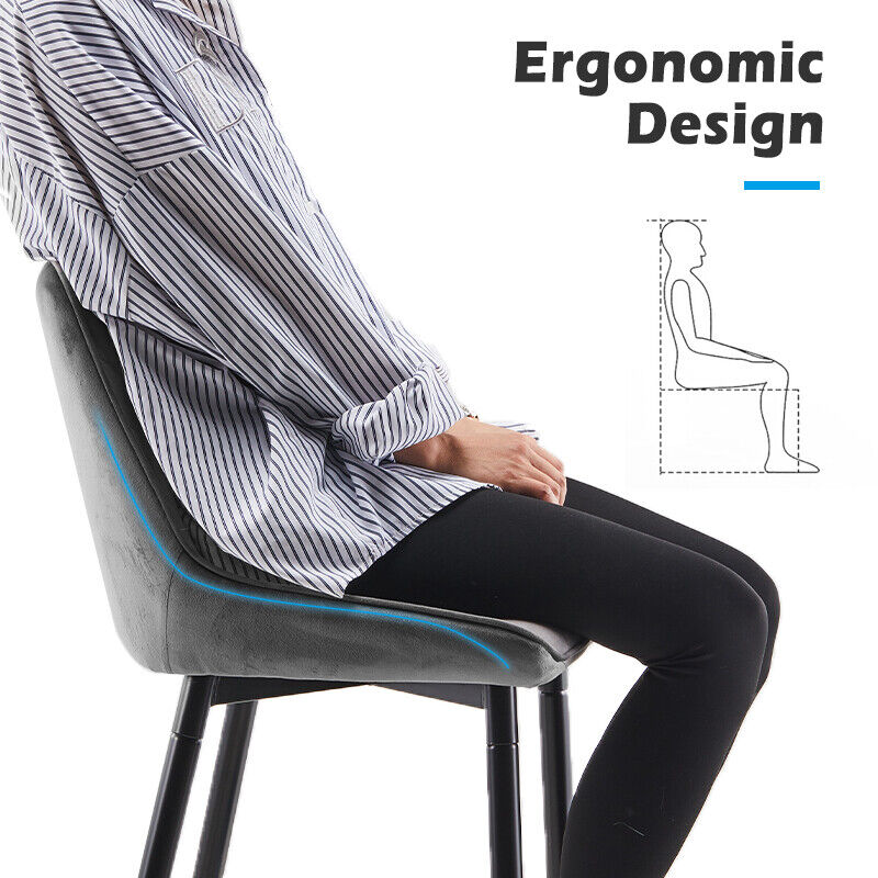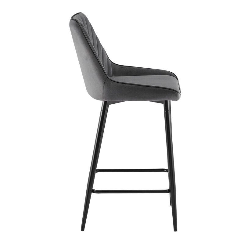 2x Velvet Grey Bar Stool Kitchen Counter Breakfast Chair Pub Restaurant Cafe