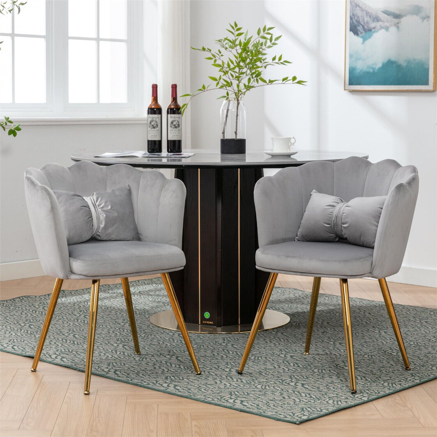 2x Velvet Upholstered Accent Chair Wing Back Armchair w/ Pilows Metal Legs Grey