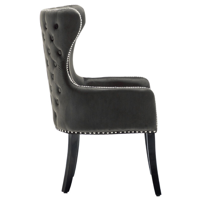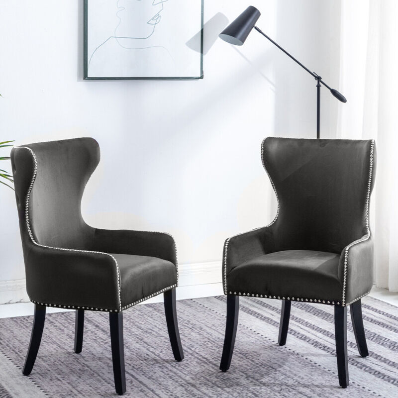 2X Velvet Upholstered Dining Chairs Button Tufted High Back Padded Seat Kitchen