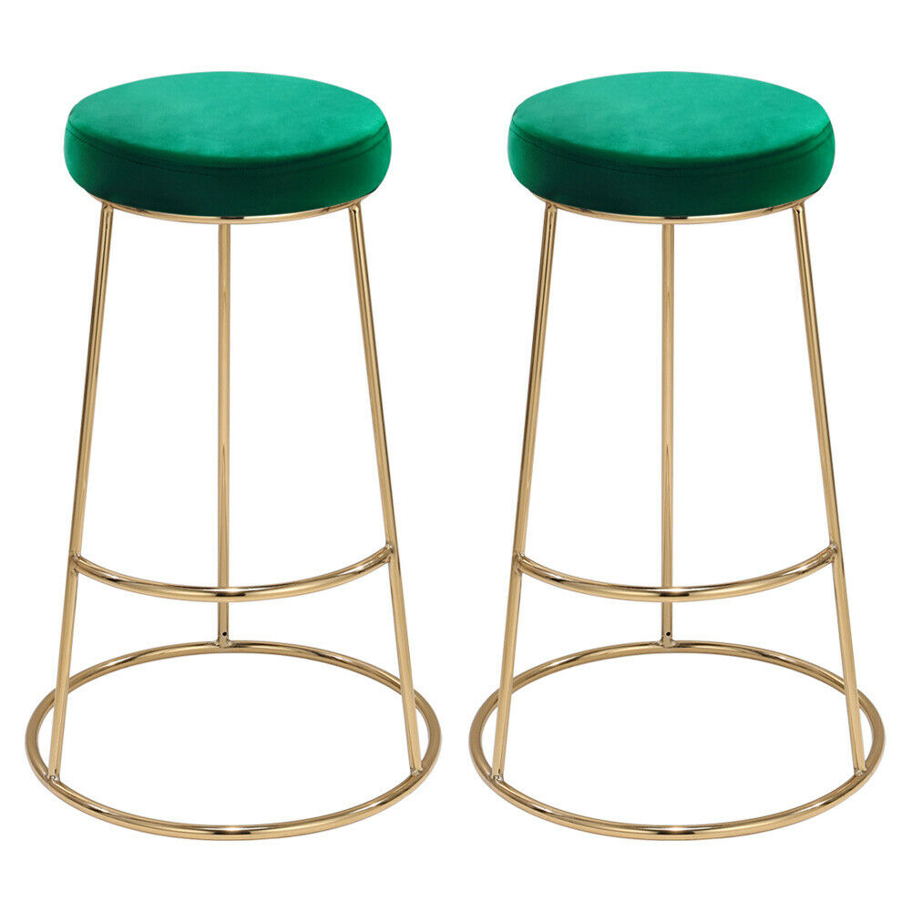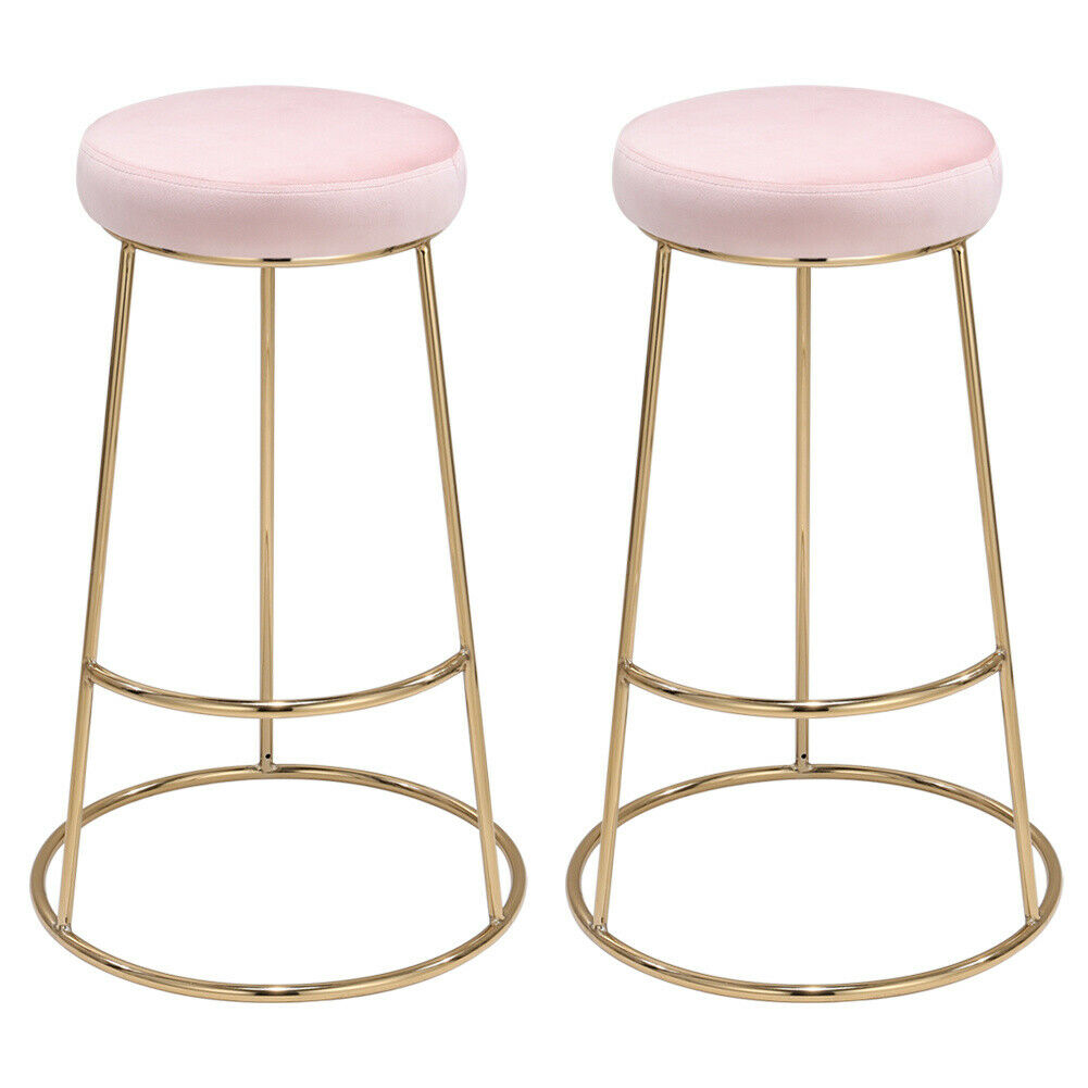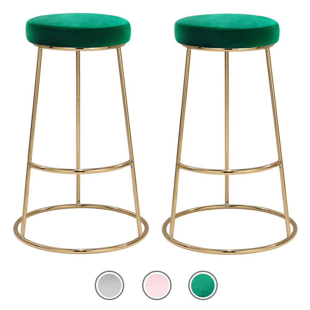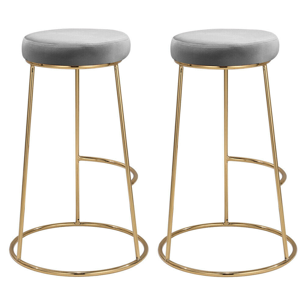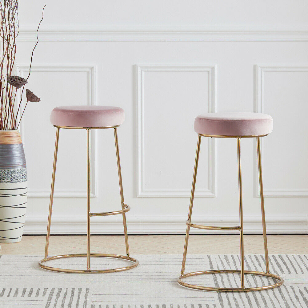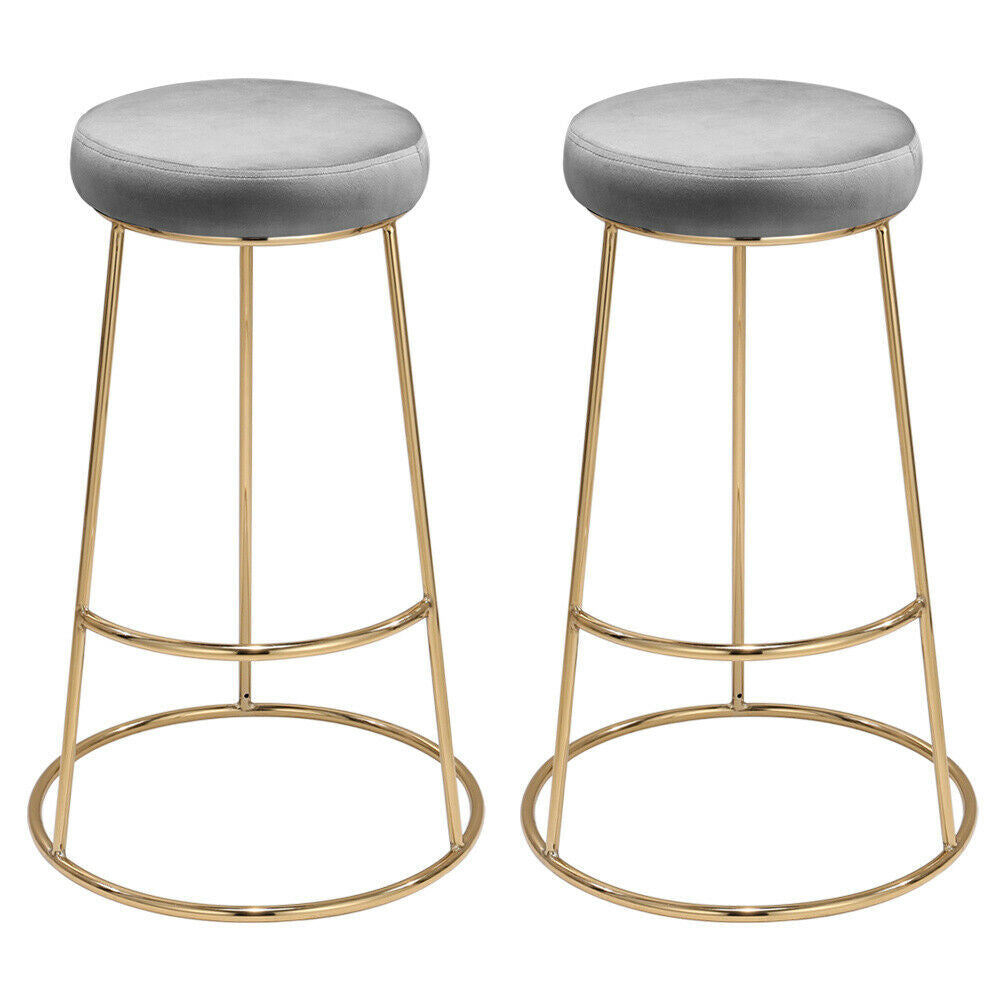 2x Vintage Bar Stool Metal Gold Leg Retro Footrest Seat Kitchen Pub Counter Home