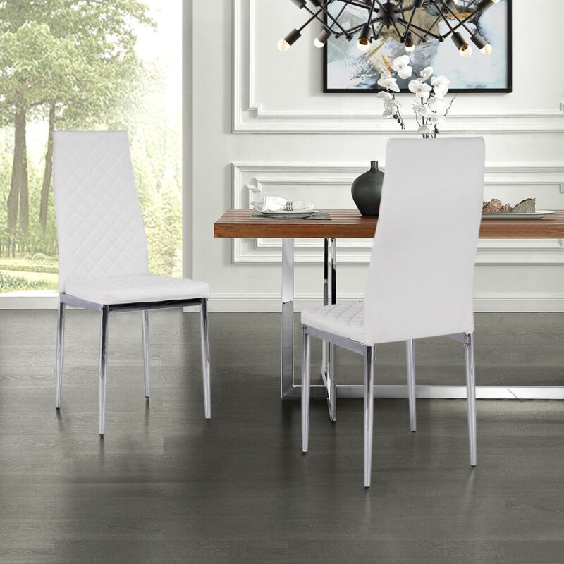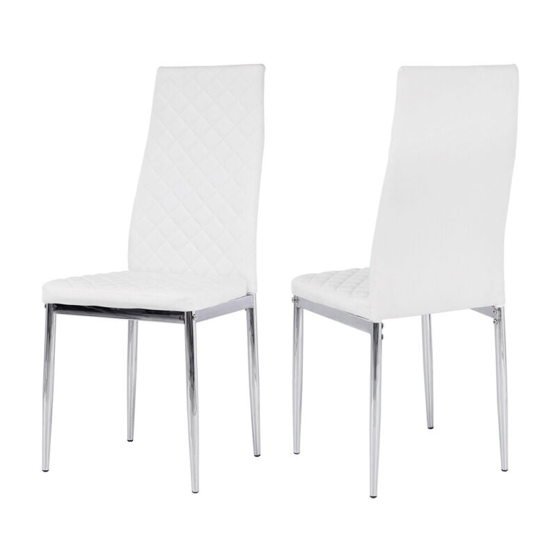 2X White Banquet Dining Chairs Padded Seat Kitchen Chair with Silver Steel Legs