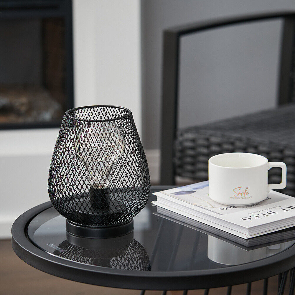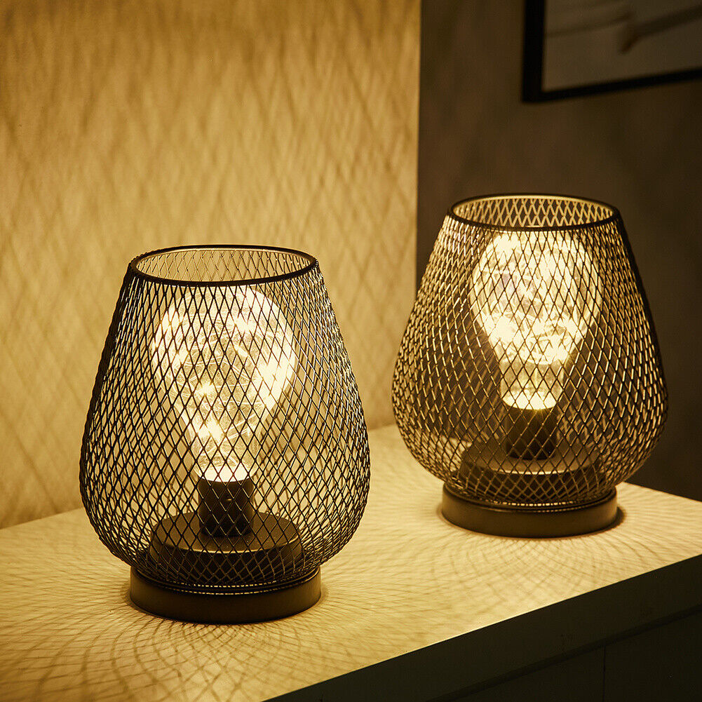 2x Wrought Iron Cage Bedside Table Lamp Warm White Night Light with LED Bulb UK