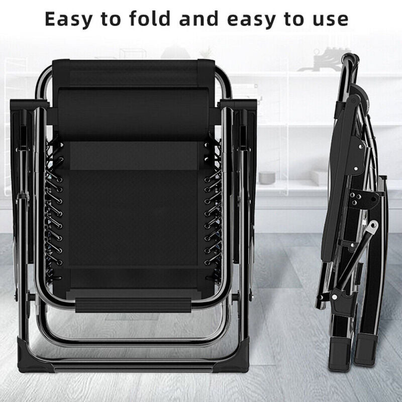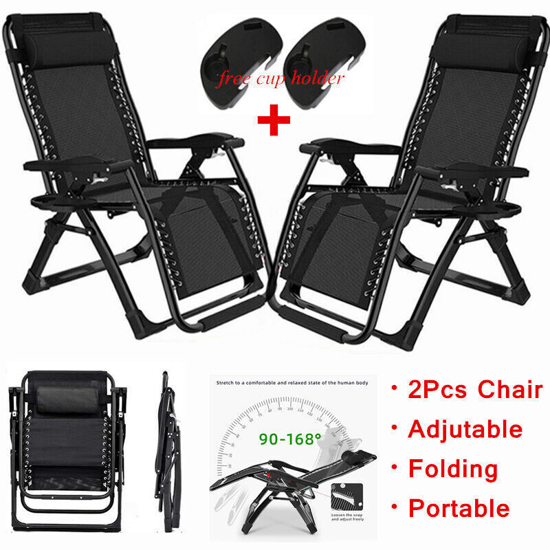 2X ZERO GRAVITY CHAIR OUTDOOR GARDEN FOLDING RECLINING SUN LOUNGER & CUP HOLDER