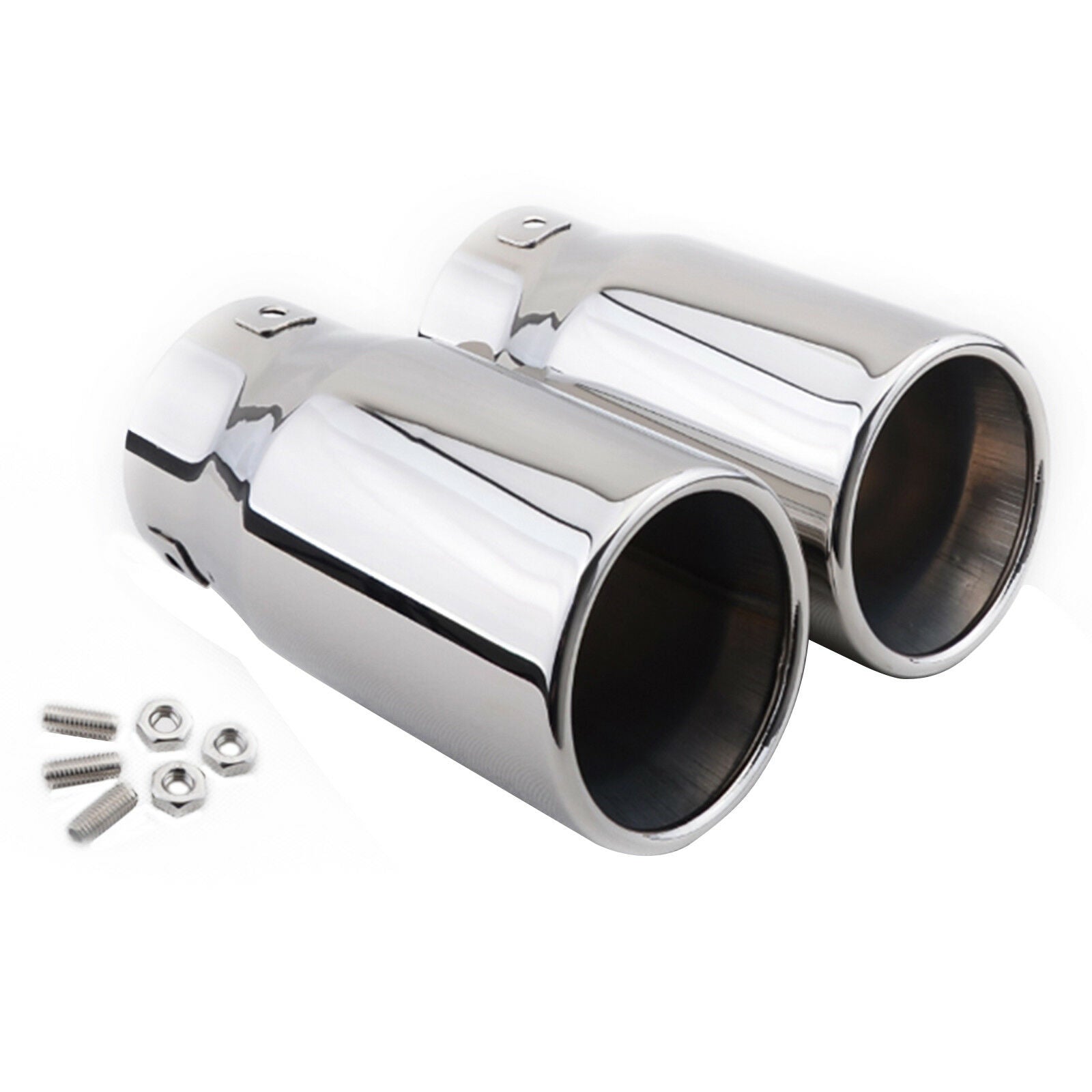 2X75mm Stainless Steel Racing Exhaust Muffler Rear Tail Pipe Trim Straight UK
