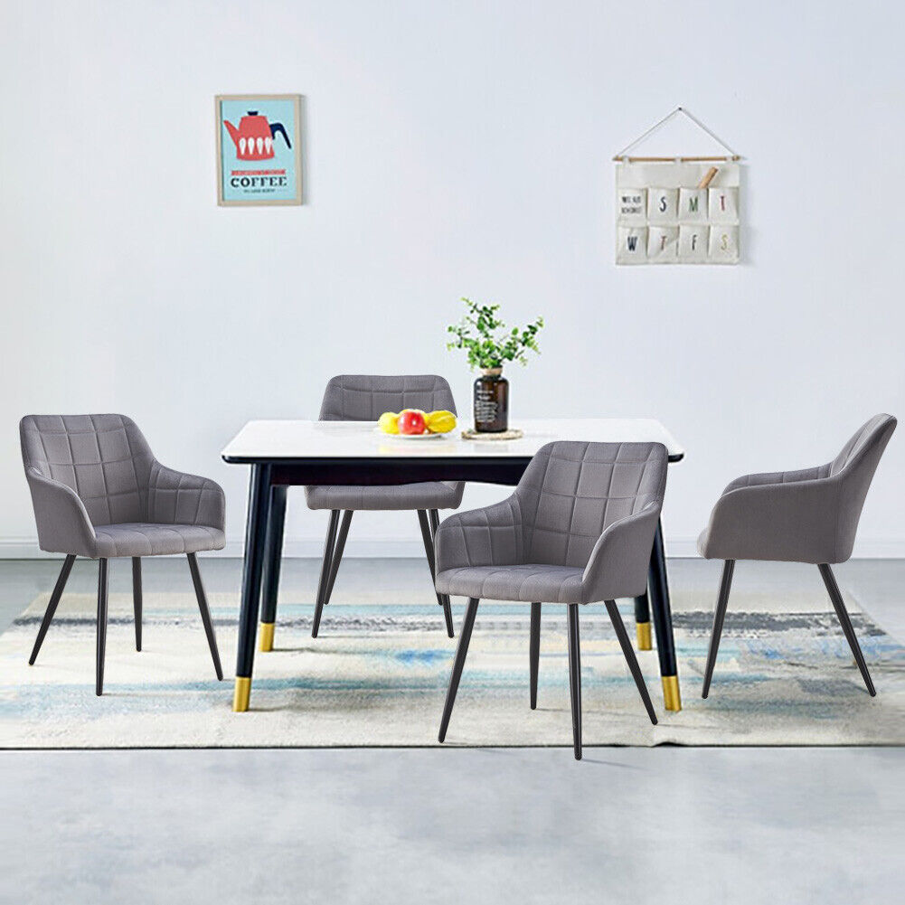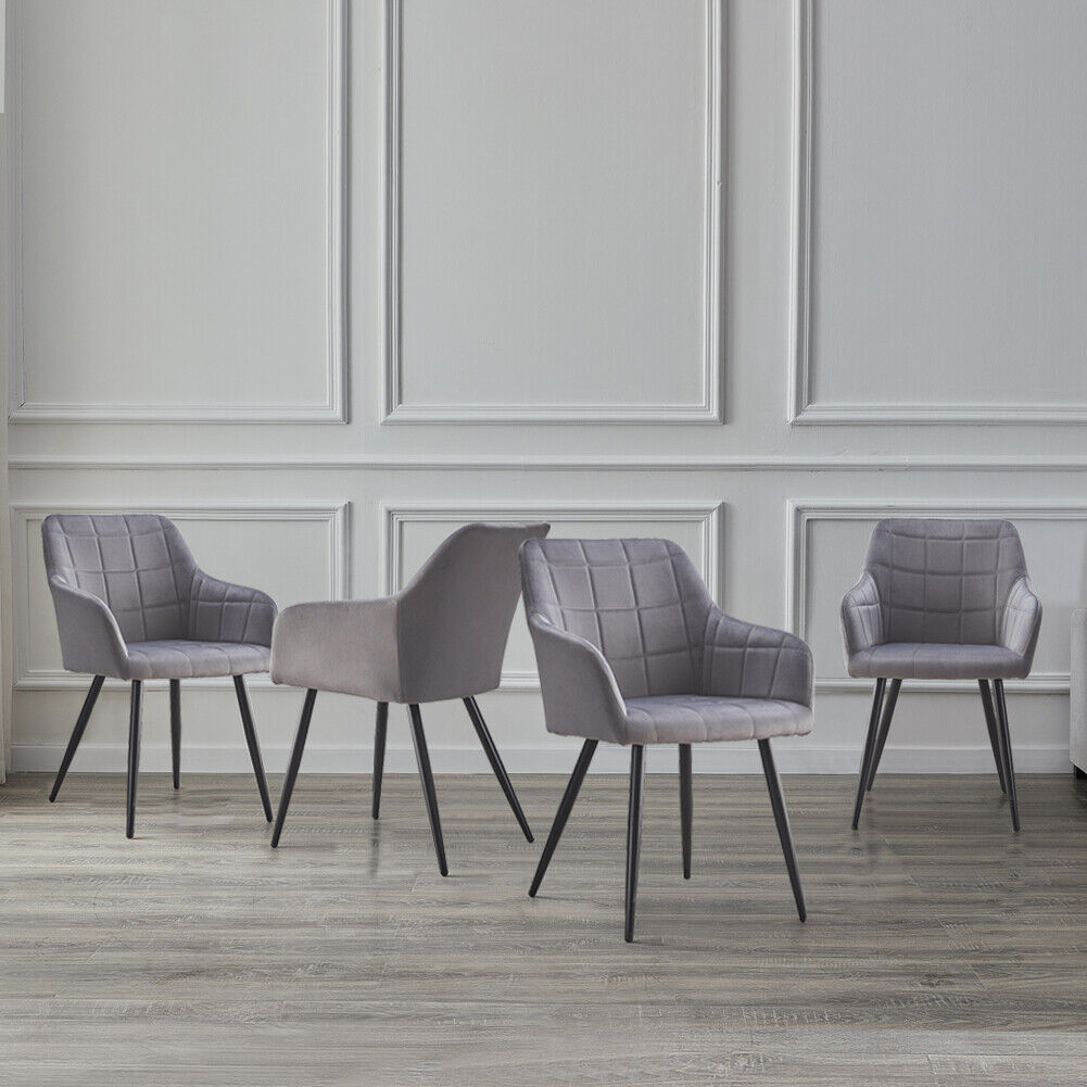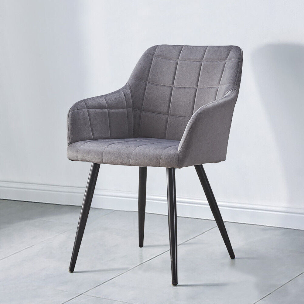 2XGrey Velvet Dining Chairs Armchairs Dining Room Chair Padded Seat New