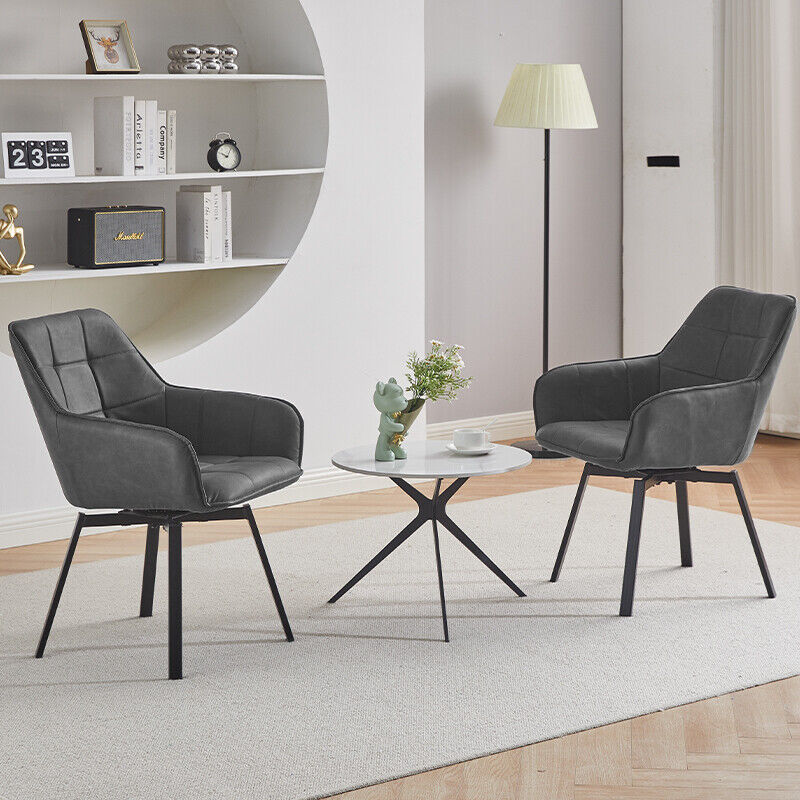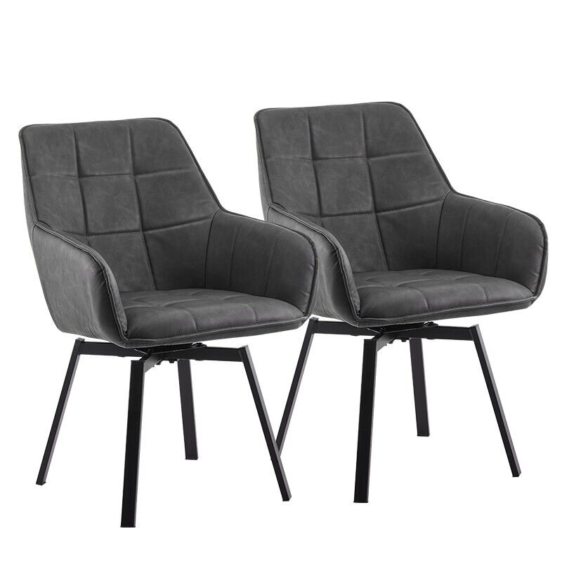2xSwivel Dining Chairs Grey Faux Leather Padded Seat Dining Room Kitchen