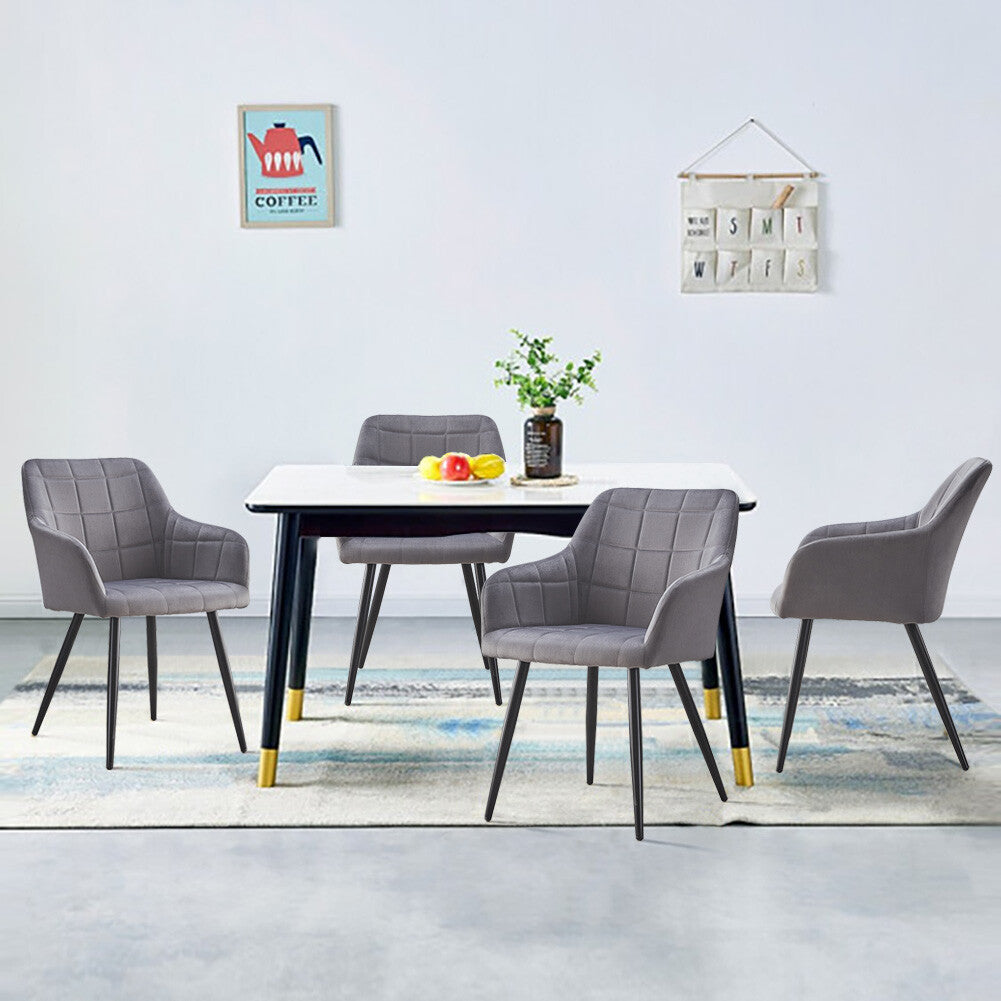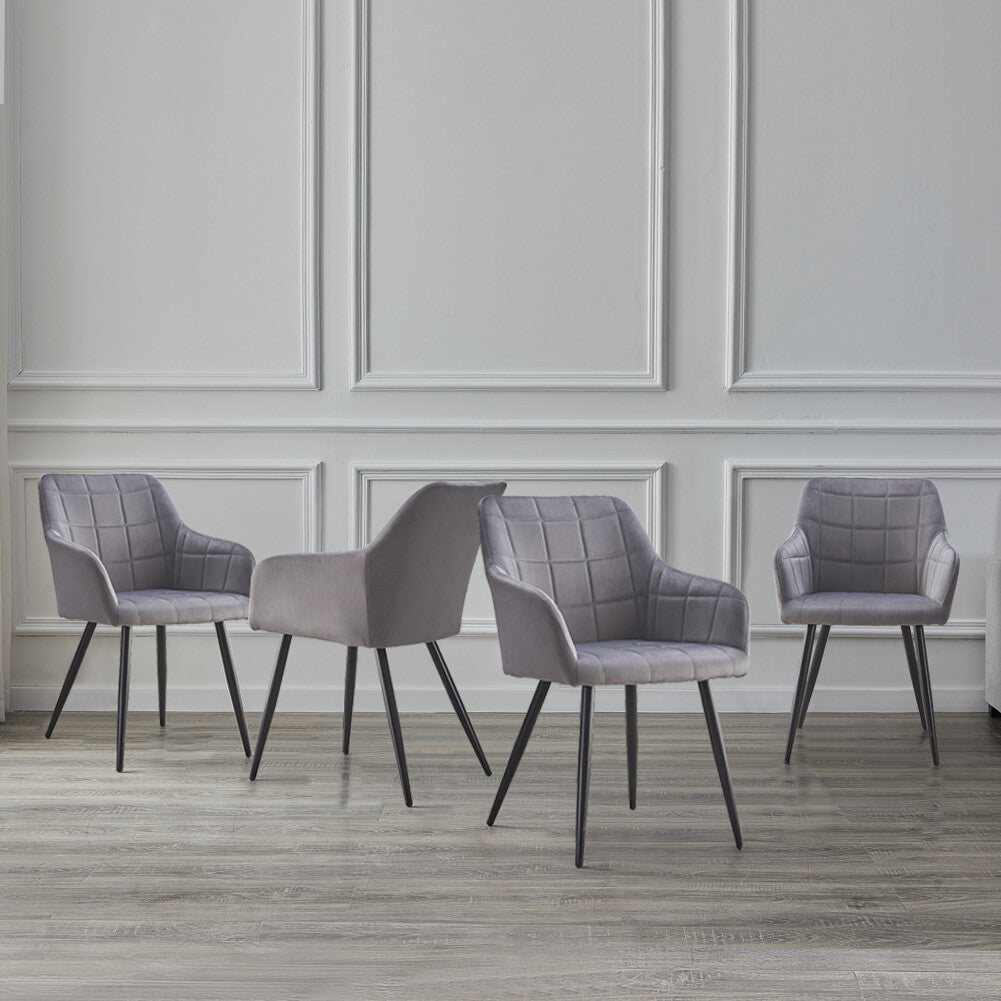 2XUsed Grey Velvet Dining Chairs Armchairs Dining Room Chair Padded Seat