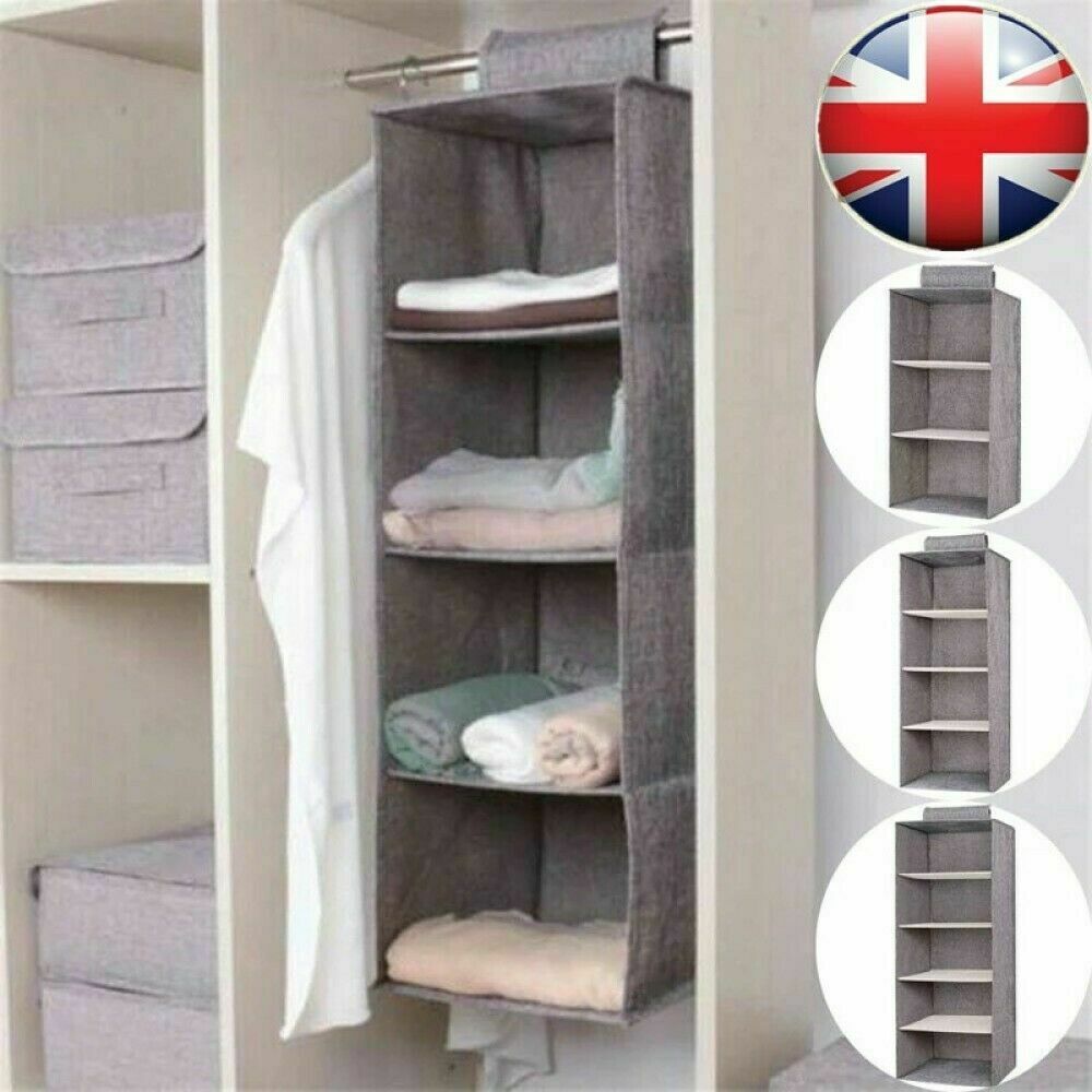3/4/5 Tier DRAWER SHELVES HANGING WARDROBE SHOE GARMENT ORGANISER STORAGE CLOTHE