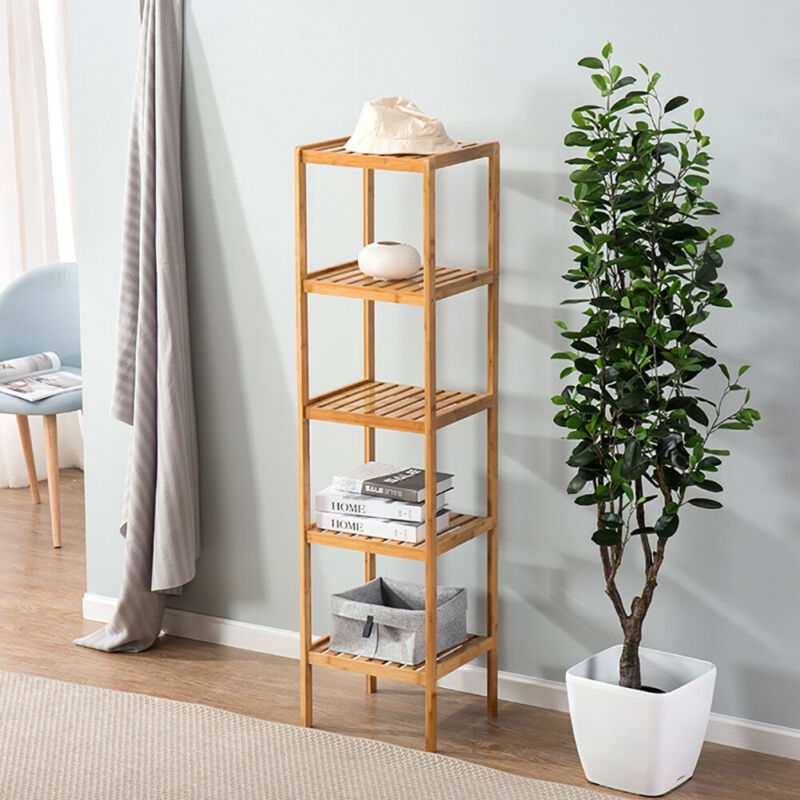 3/4/5 Tiers Bamboo Shelf Stand Book Plant Display Storage Cabinet Towels Holder