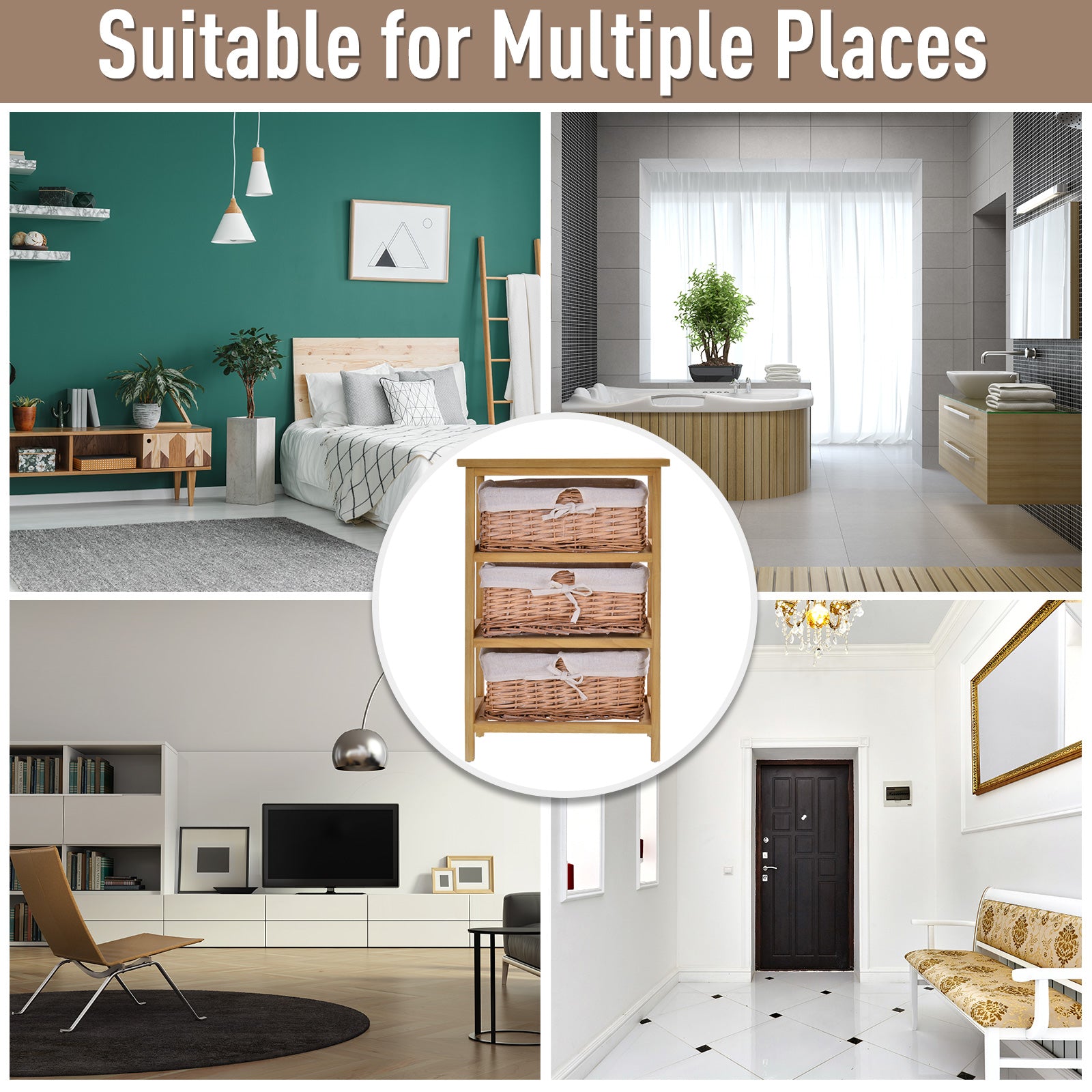3/4 Drawer Dresser Wicker Storage Shelf Unit Wooden Home Organisation Natural