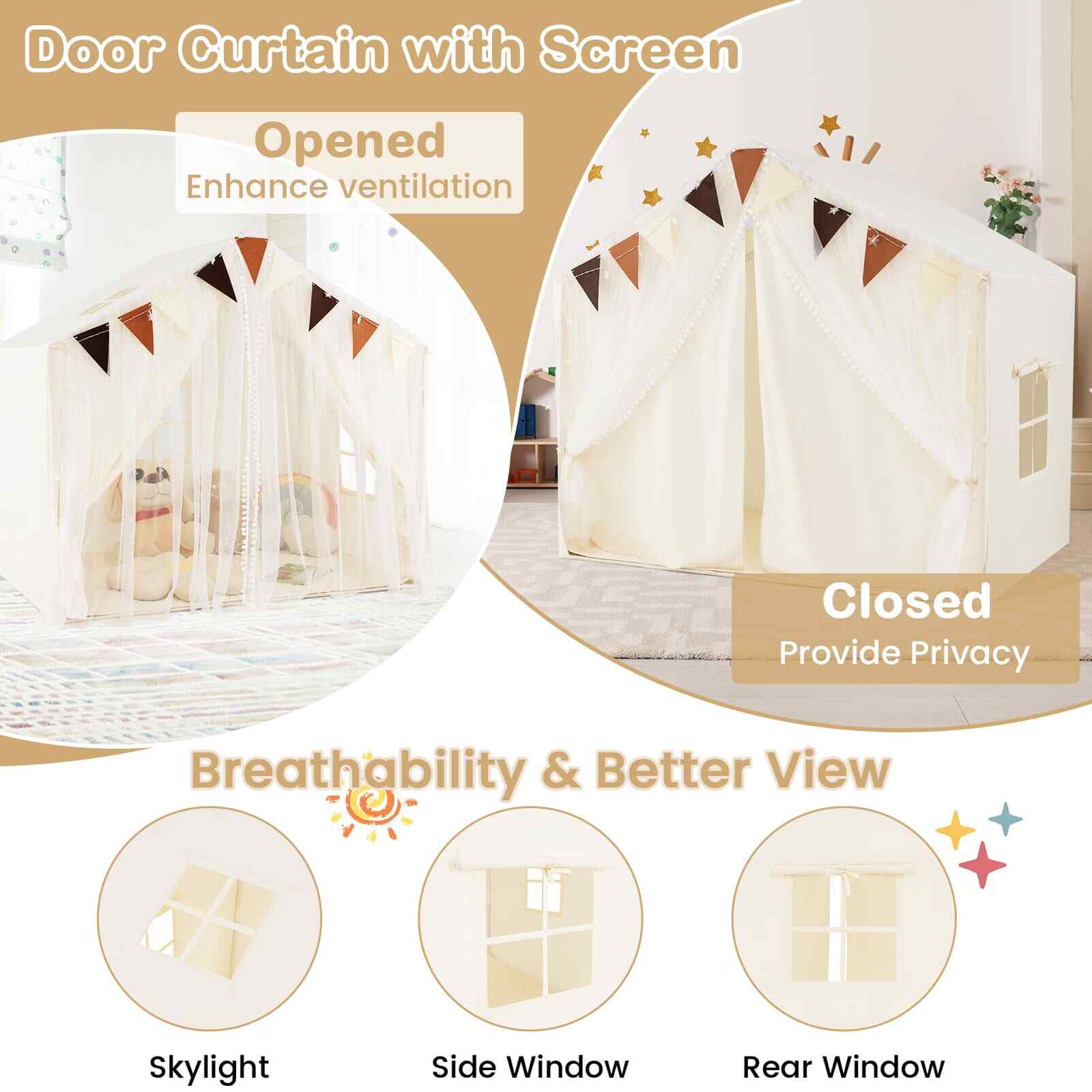 3-4 Kids Large Play Tent House Kids Play Tent w/Star Lights-Beige