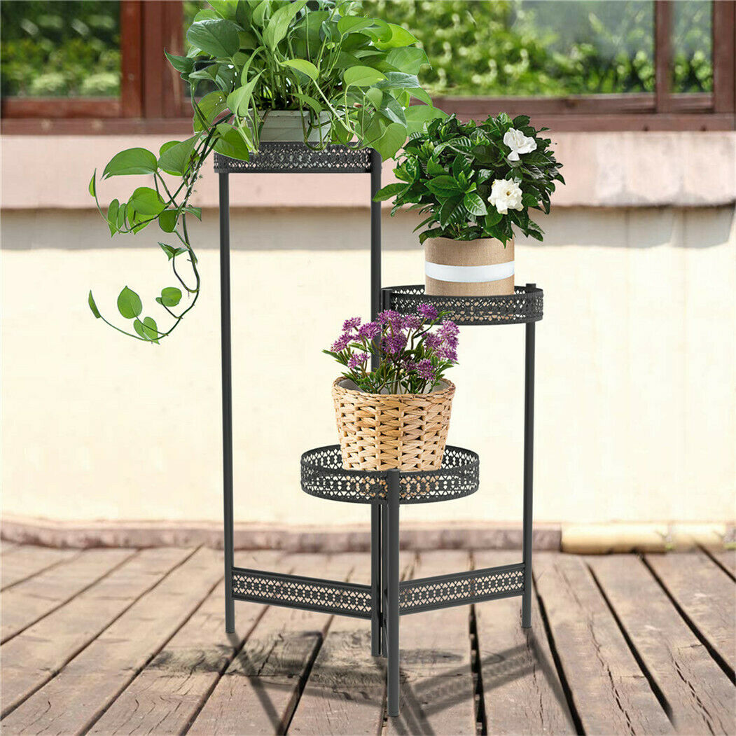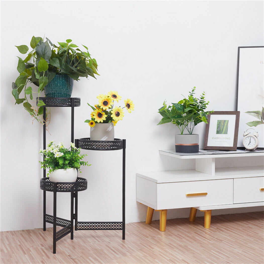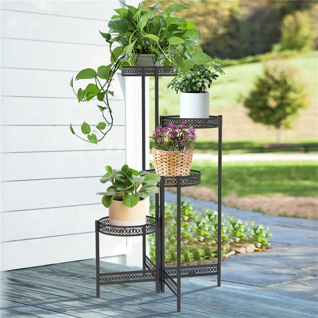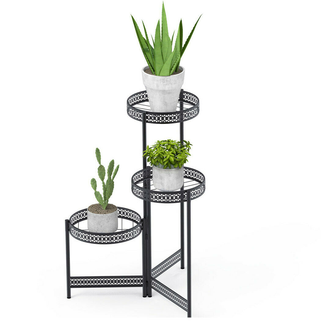 3/4 Tier Metal Plant Pot Stand Folding Flower Pot Rack Shelf For Indoor Outdoor