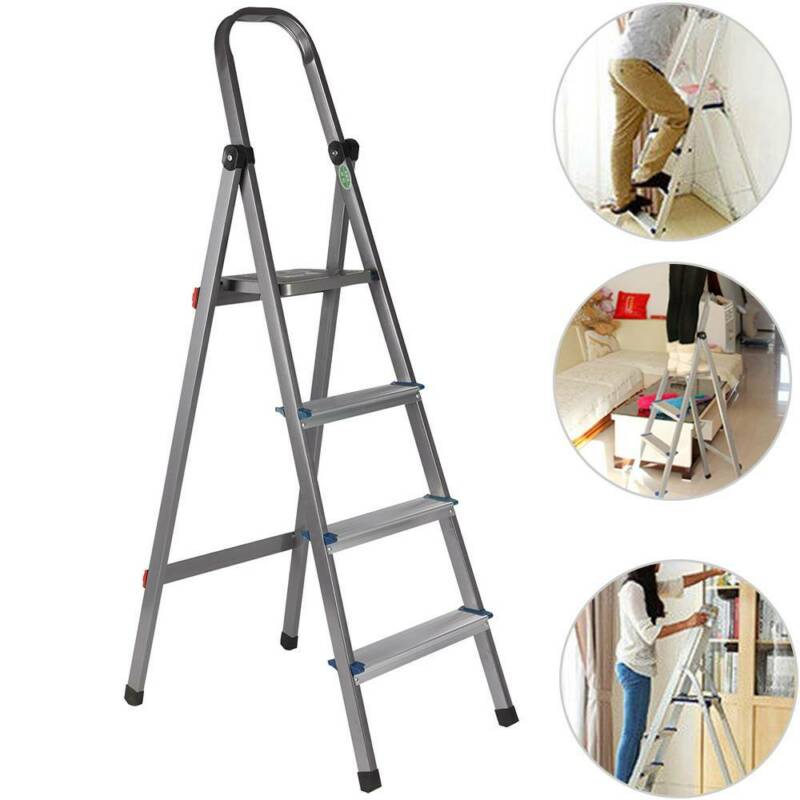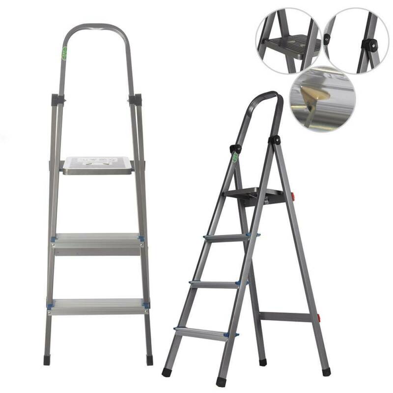 3 4 Tread Step Ladder Folding Aluminum Ladders with Safety Non-Slip Step