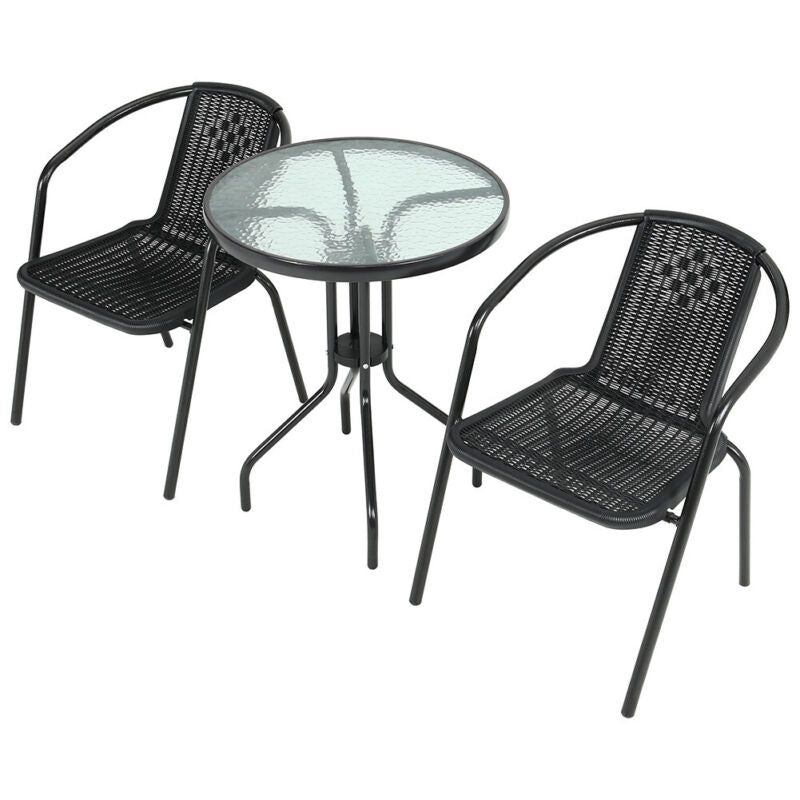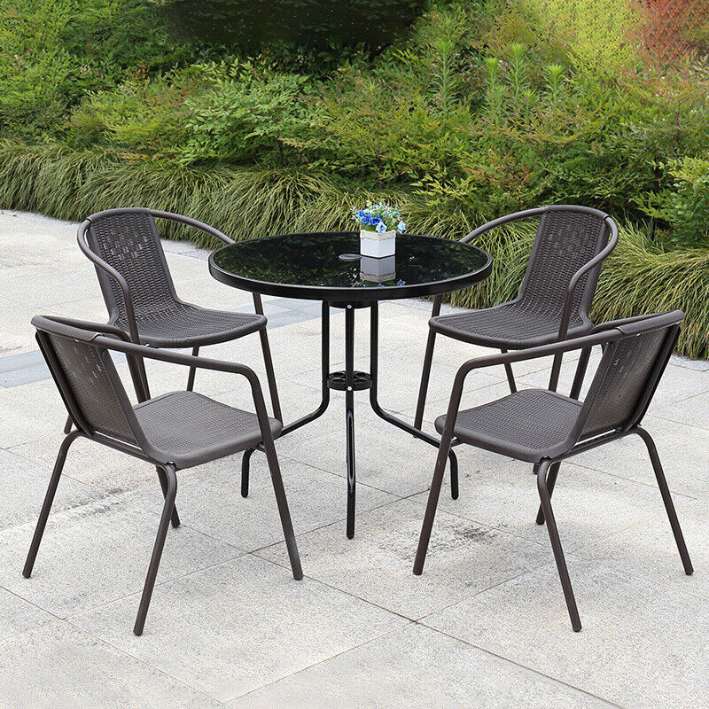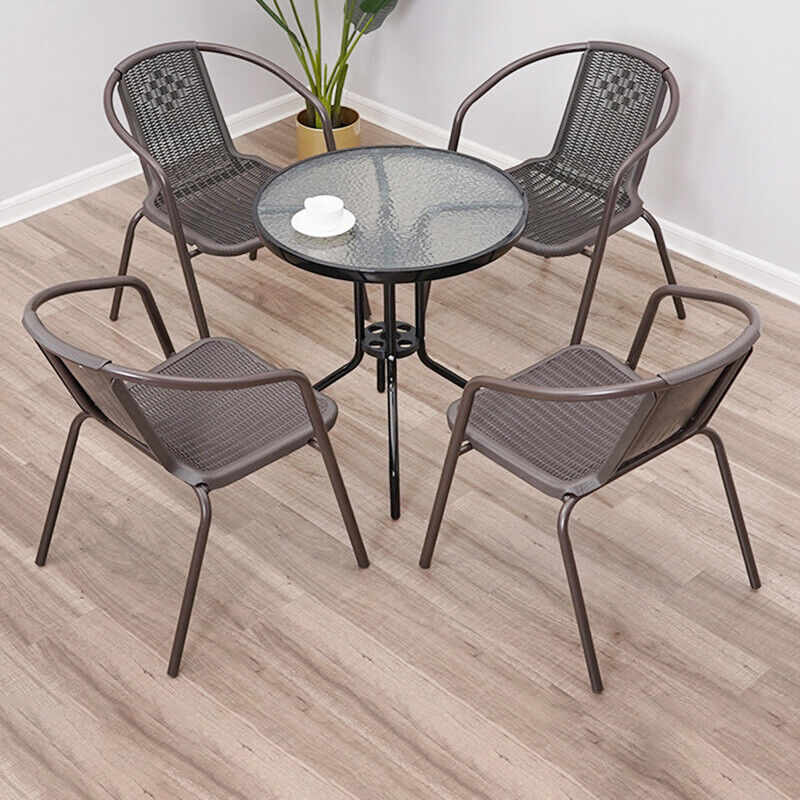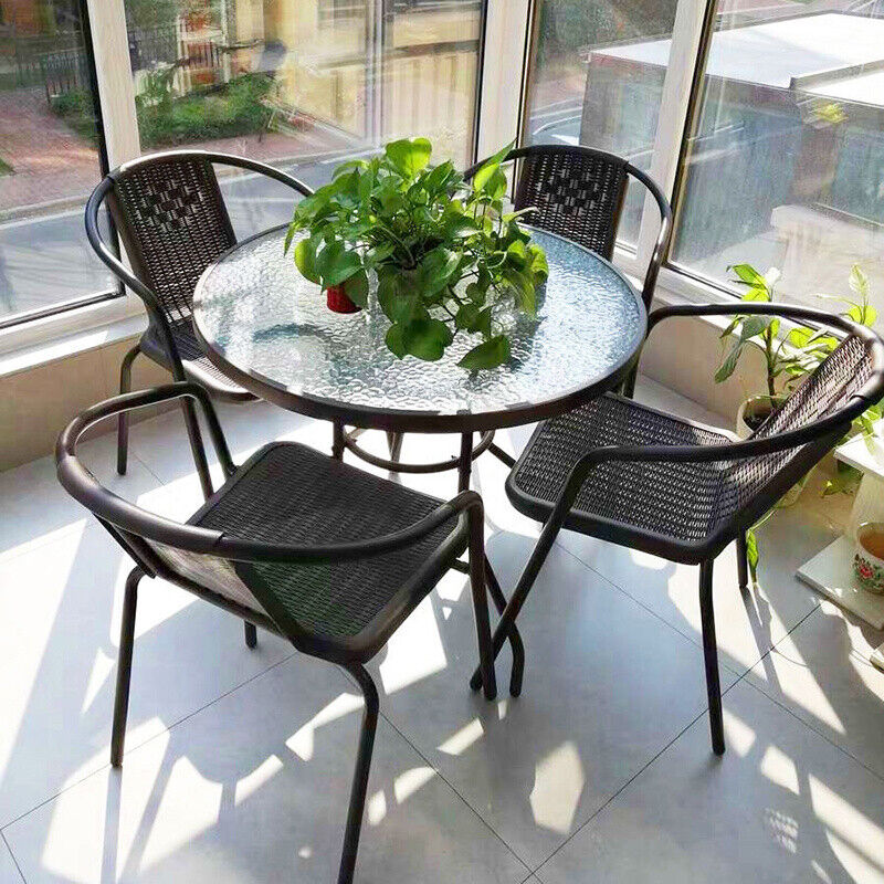3/5 Piece Round Coffee Table & Rattan Chairs Metal Bistro Balcony Garden Outdoor