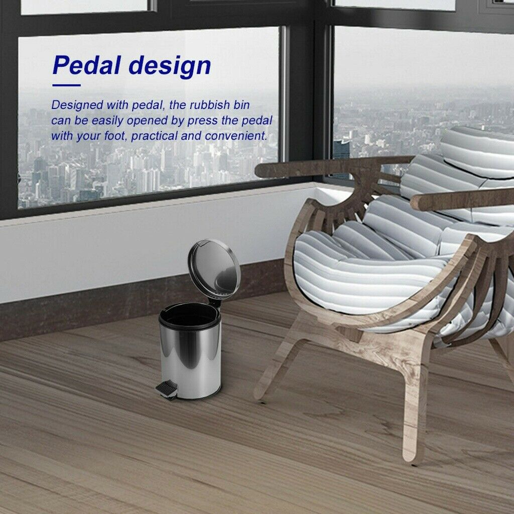 3/5L S/LESS STEEL SILVER PEDAL BIN KITCHEN BATHROOM TOILET RUBBISH Detachable