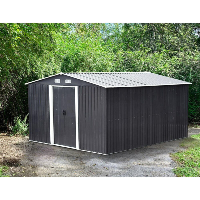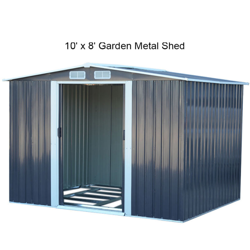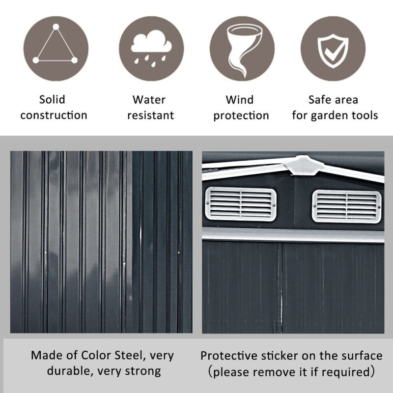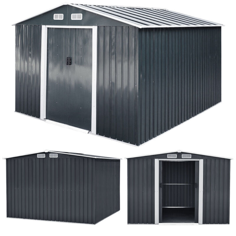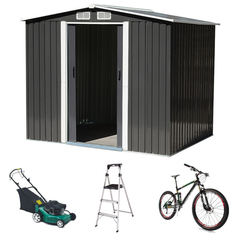 3/6/8/10/12ft Metal Garden Shed Outdoor Storage Steel Heavy Duty +Foundation Kit