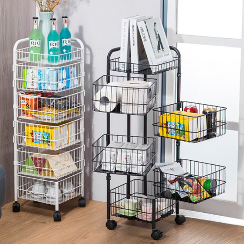 3-6 Tier Kitchen Rotating Storage Trolley Shelf Organiser Vegetable Fruits Rack