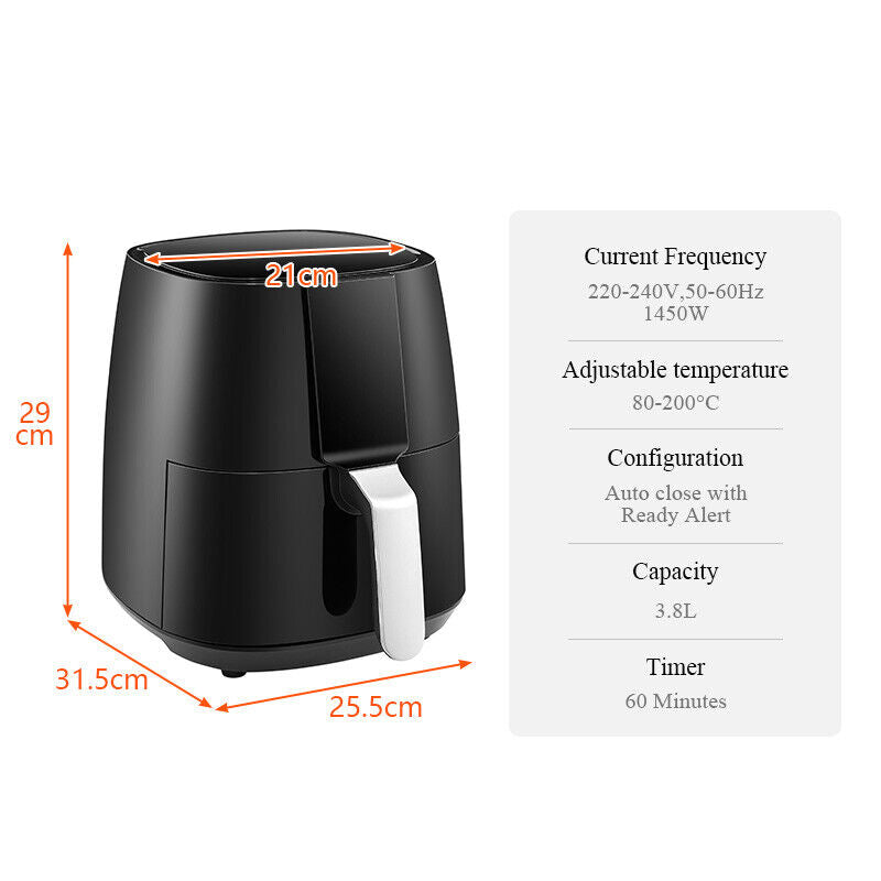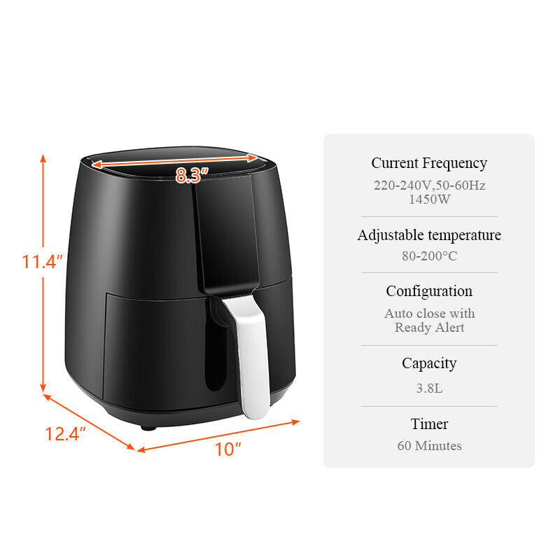 3.8L Air Fryer Rapid Healthy Cooker Oven Low Fat Oil Free Food Frying Black