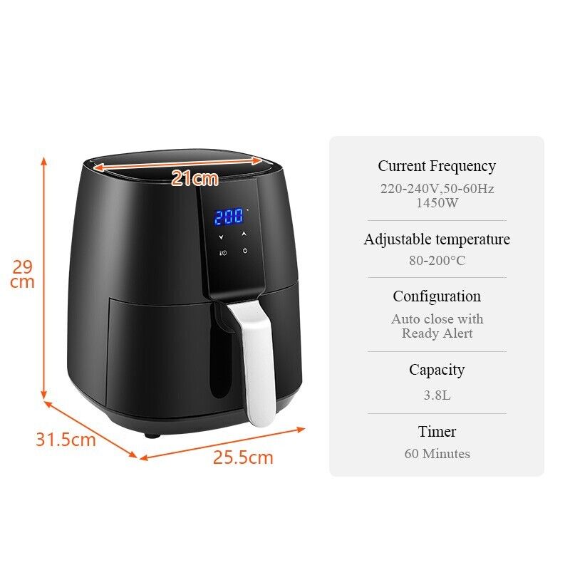 3.8L Black Air Fryer Power Oven Cooker LED Touch Oil Free Low Fat Frying New