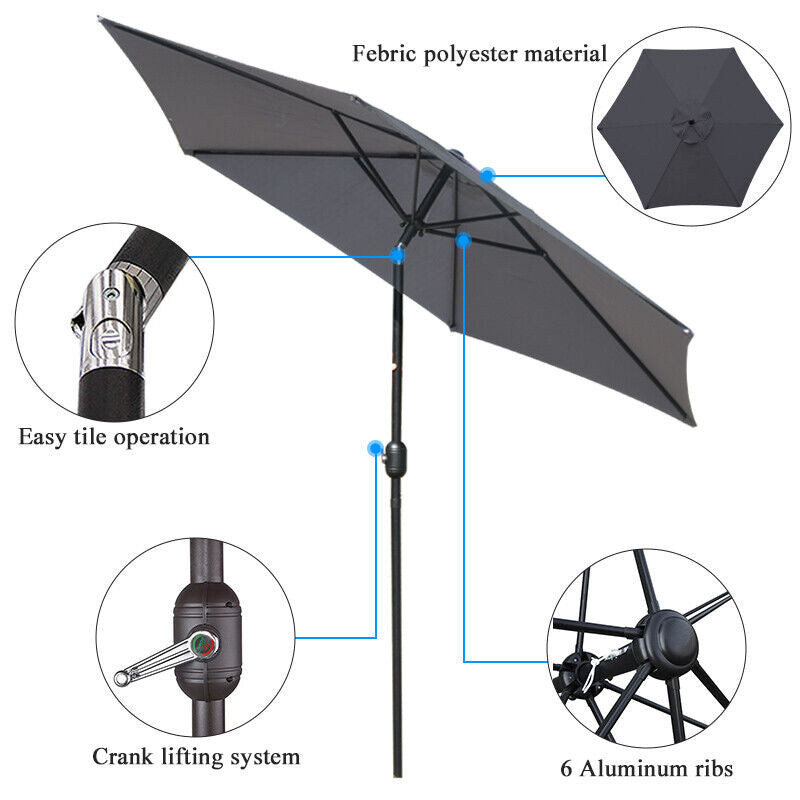 3 Color Garden Parasol Sun Umbrella Canopy Patio Garden Sun Shade 2/2.5/2.7/3M