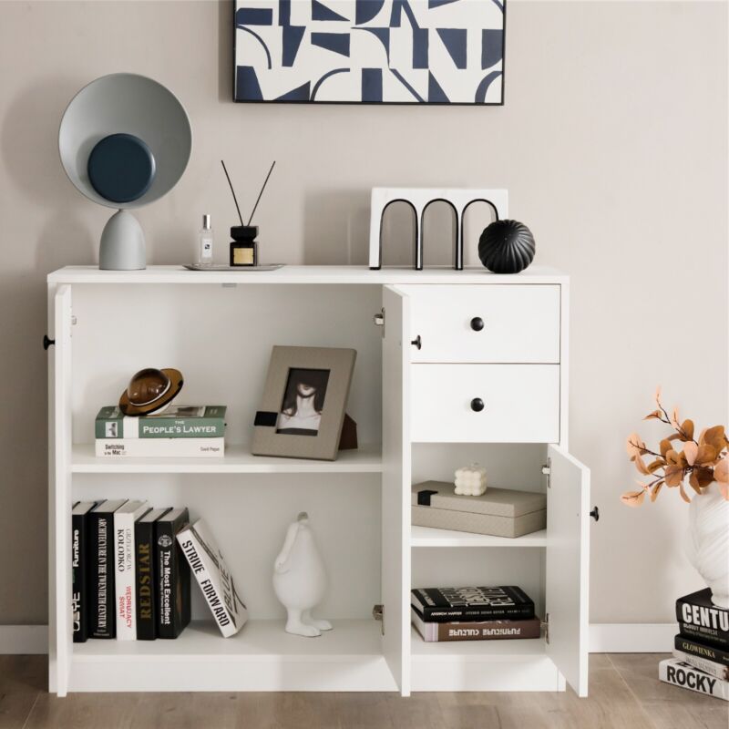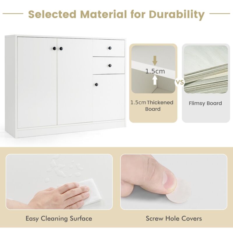 3-Door Storage Cabinet Buffet Cabinet w/ 2 Drawers Sideboard Kitchen Hallway