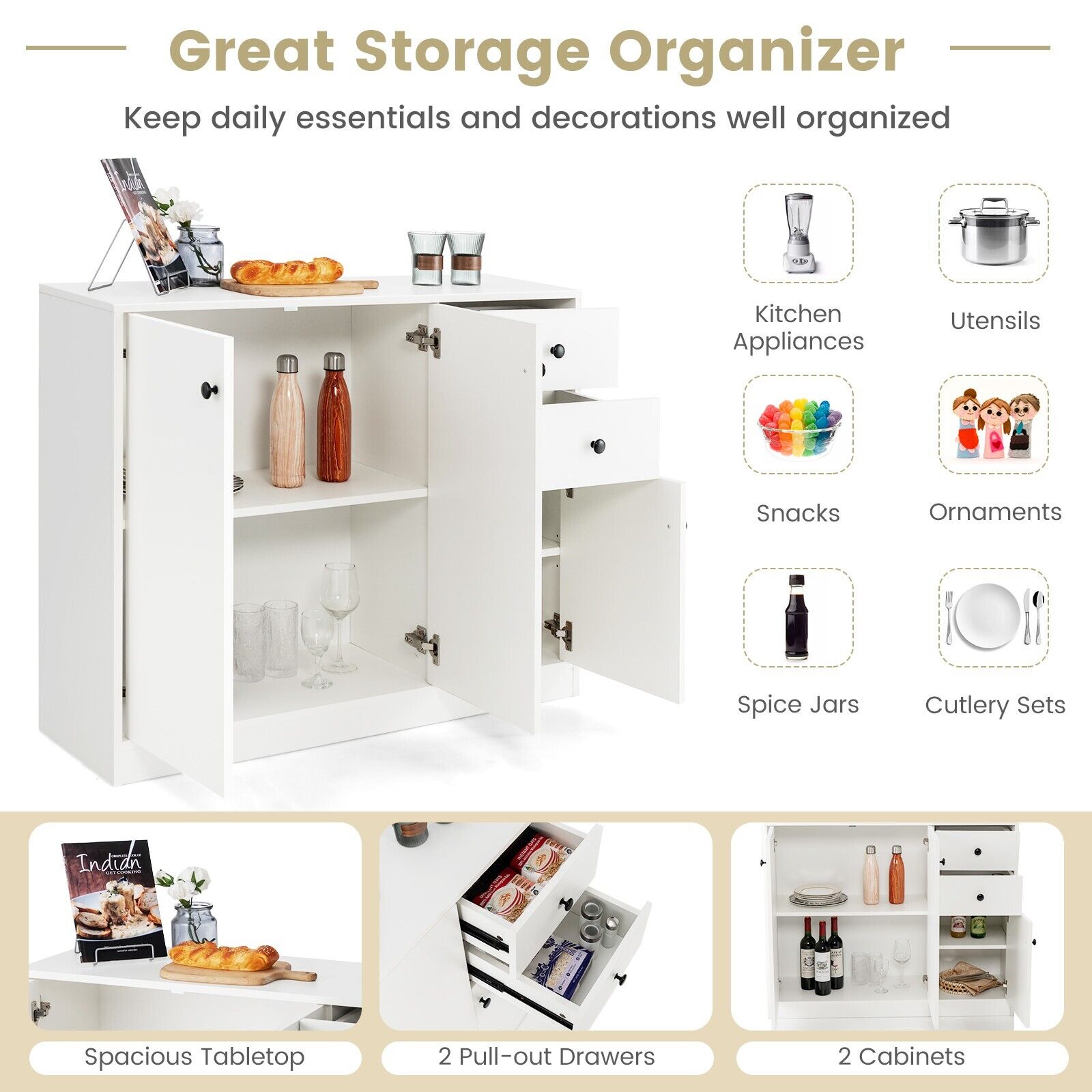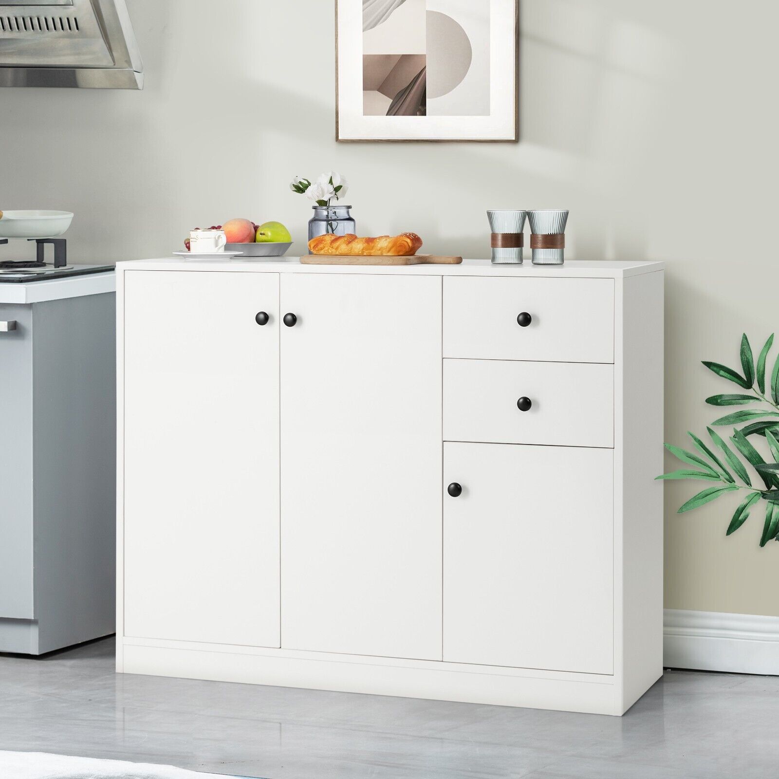 3-Door Storage Cabinet Buffet Cabinet w/ 2 Drawers Sideboard Kitchen Hallway