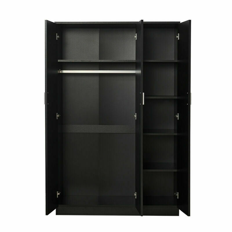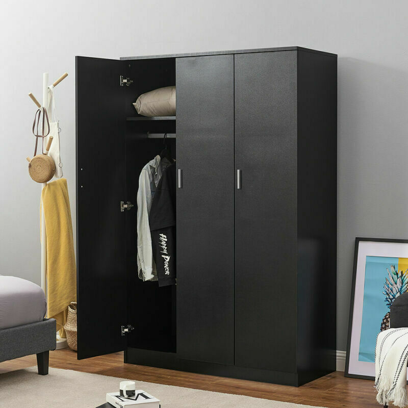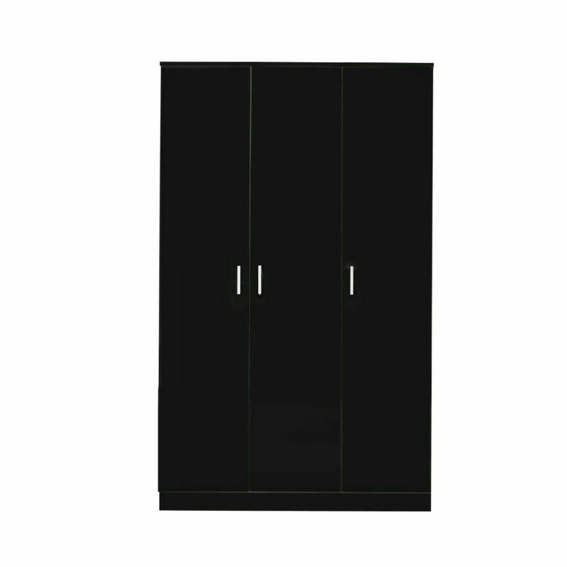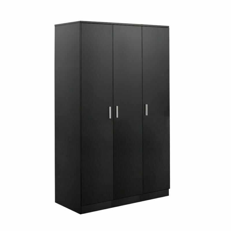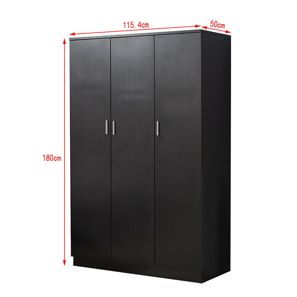 3 Door triple Wardrobe Matt Black - Bedroom Furniture Storage Cupboard UK