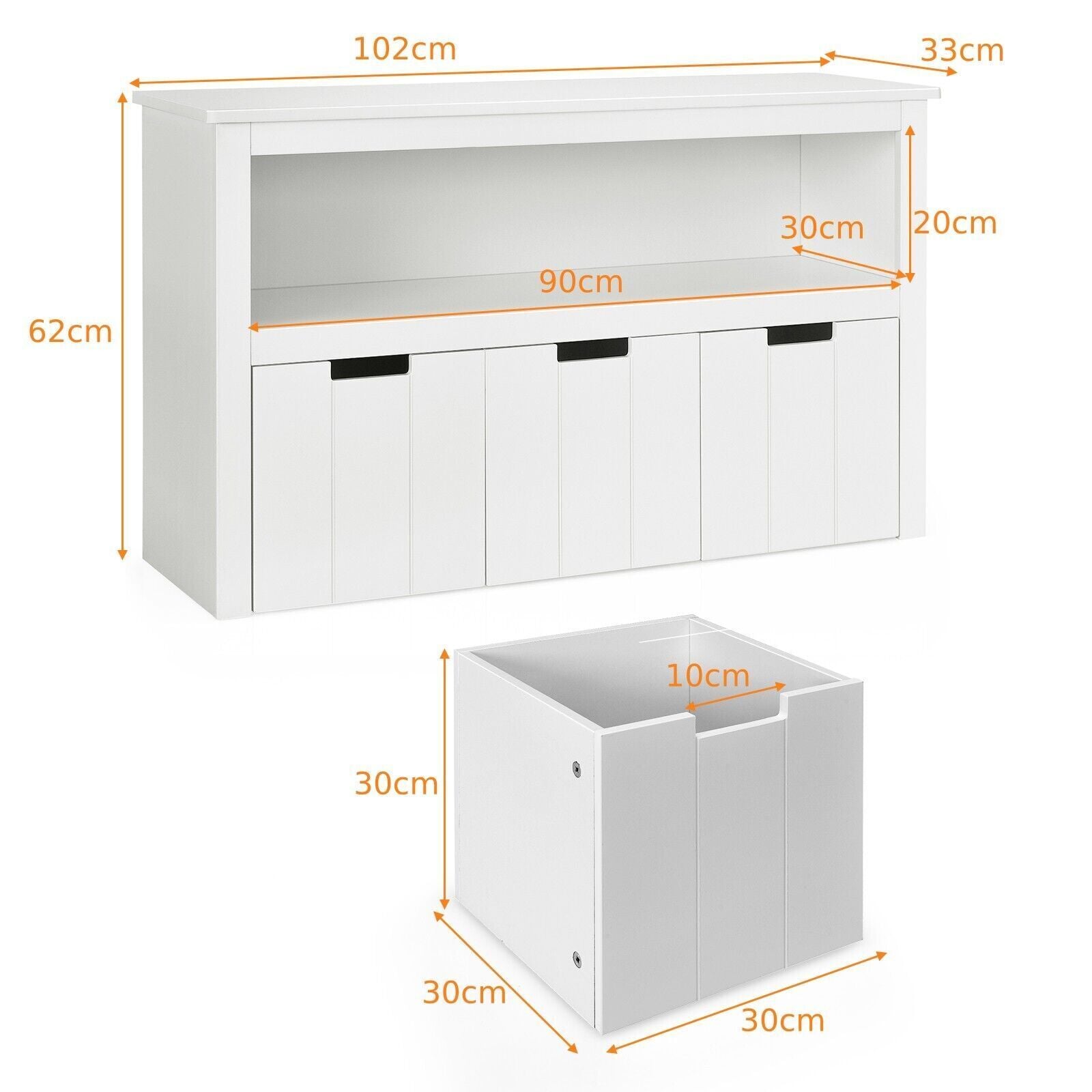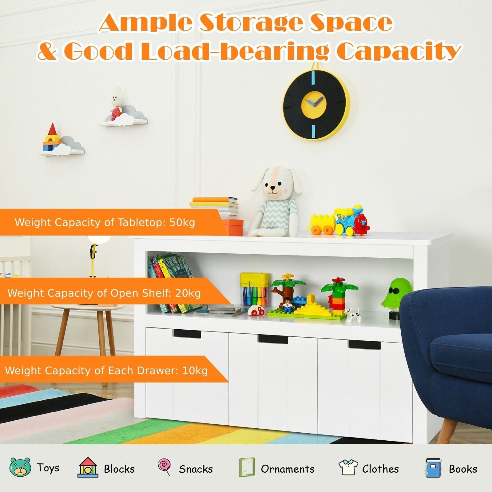 3-Drawer Large Storage Cabinet Wood Kids Toy Storage Cube Shelves w/ Wheels
