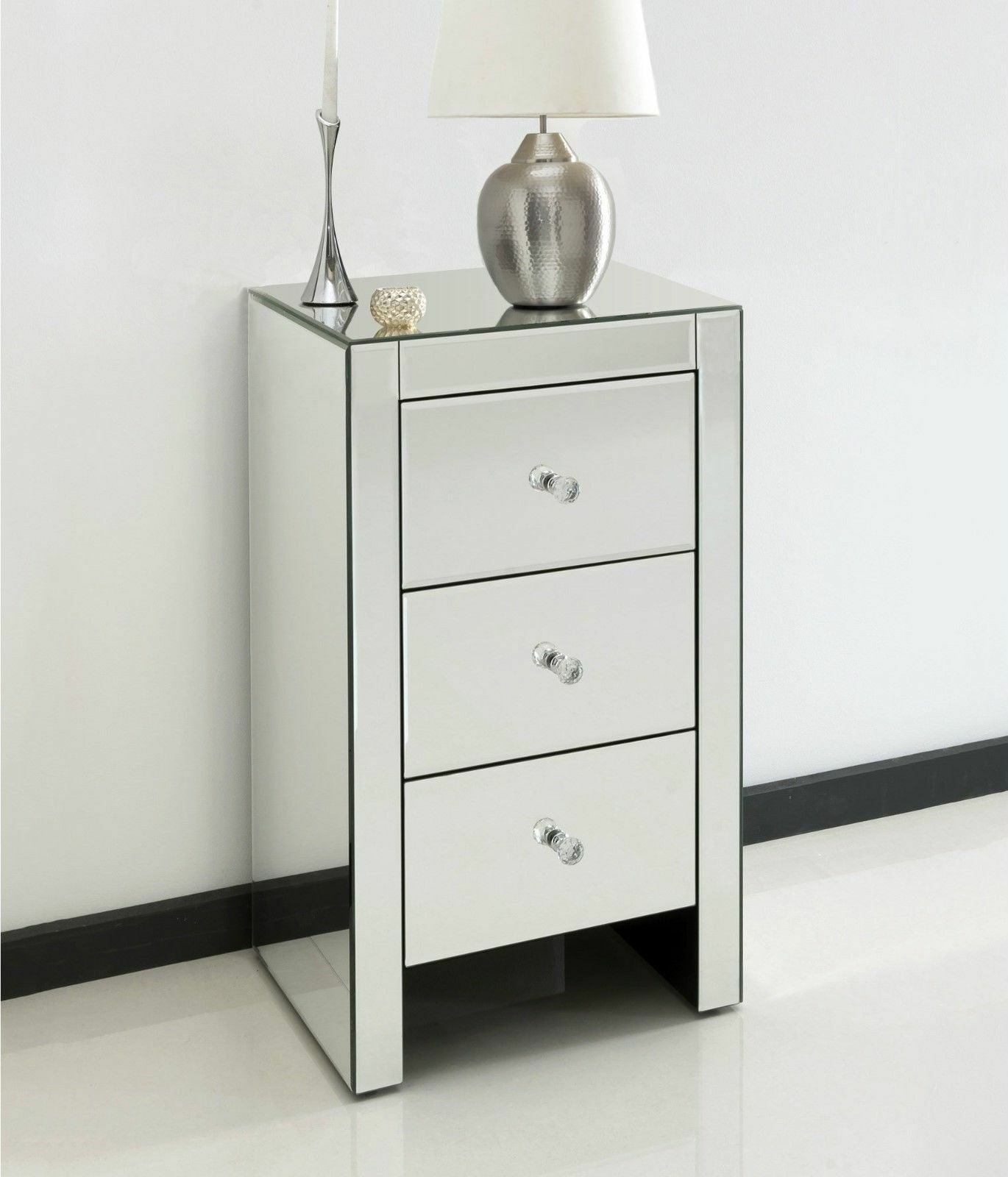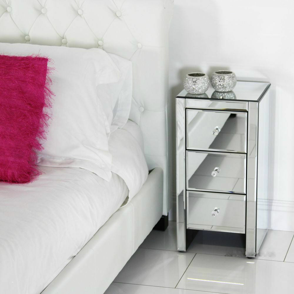 3 Drawer Mirrored Cabinet Bedside Bedroom Furniture Home Nightstand Decor Modern