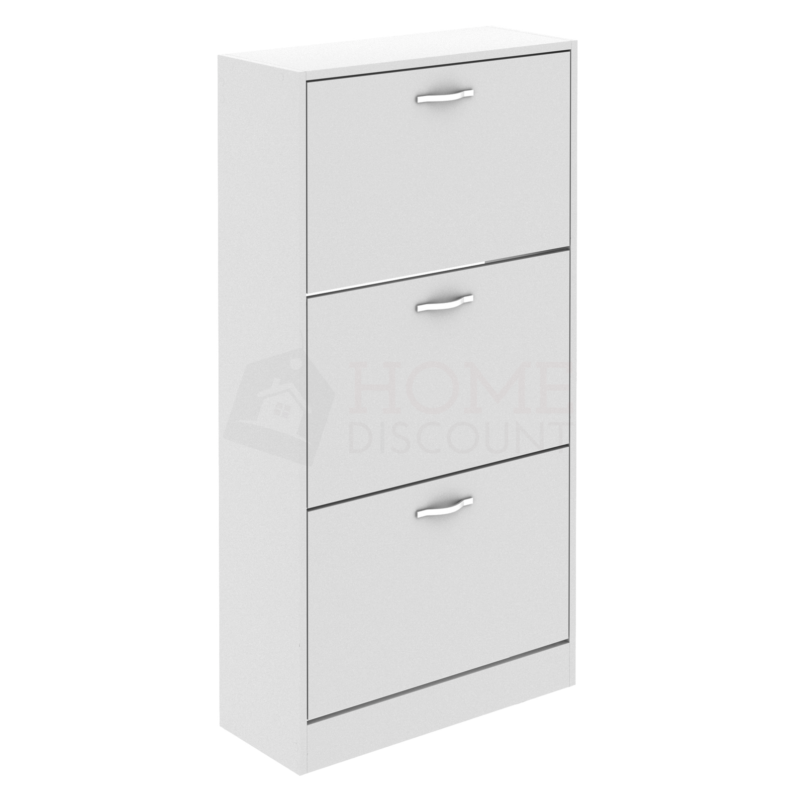 3 Drawer Shoe Cabinet Storage Cupboard Footwear Stand Rack Wooden Unit White New