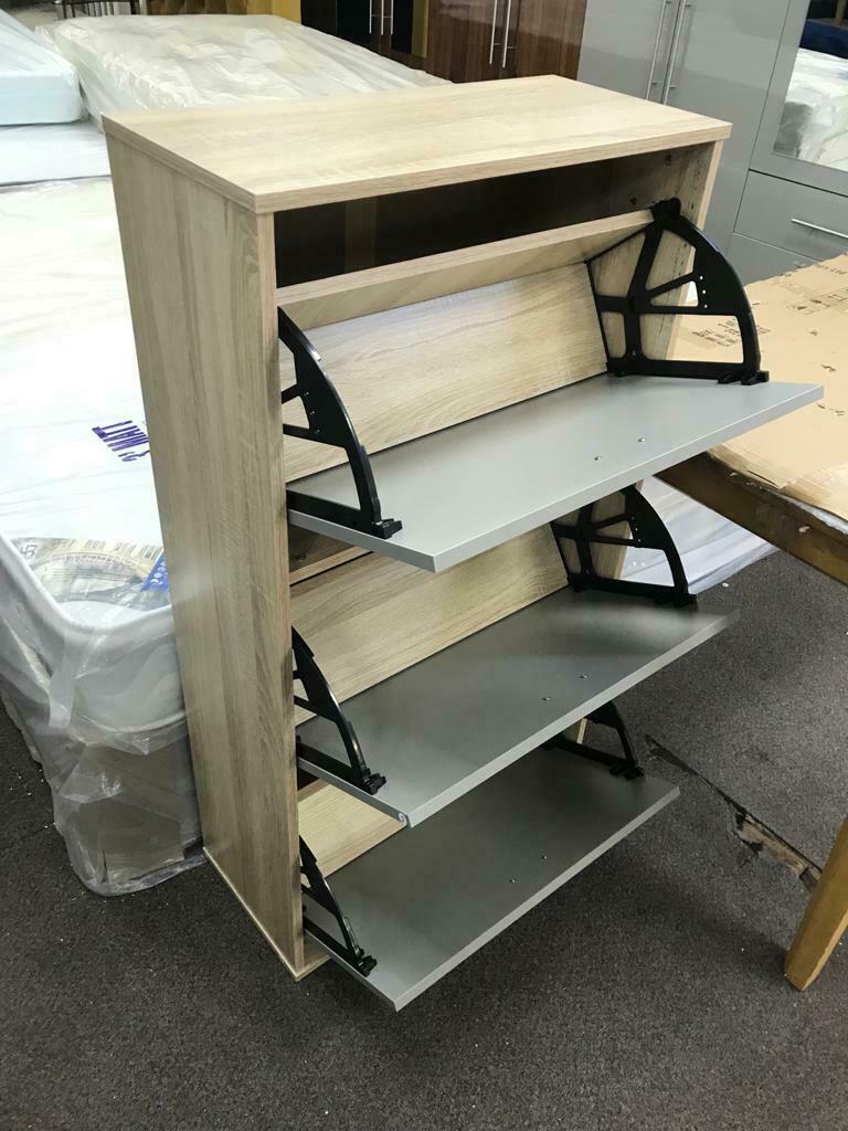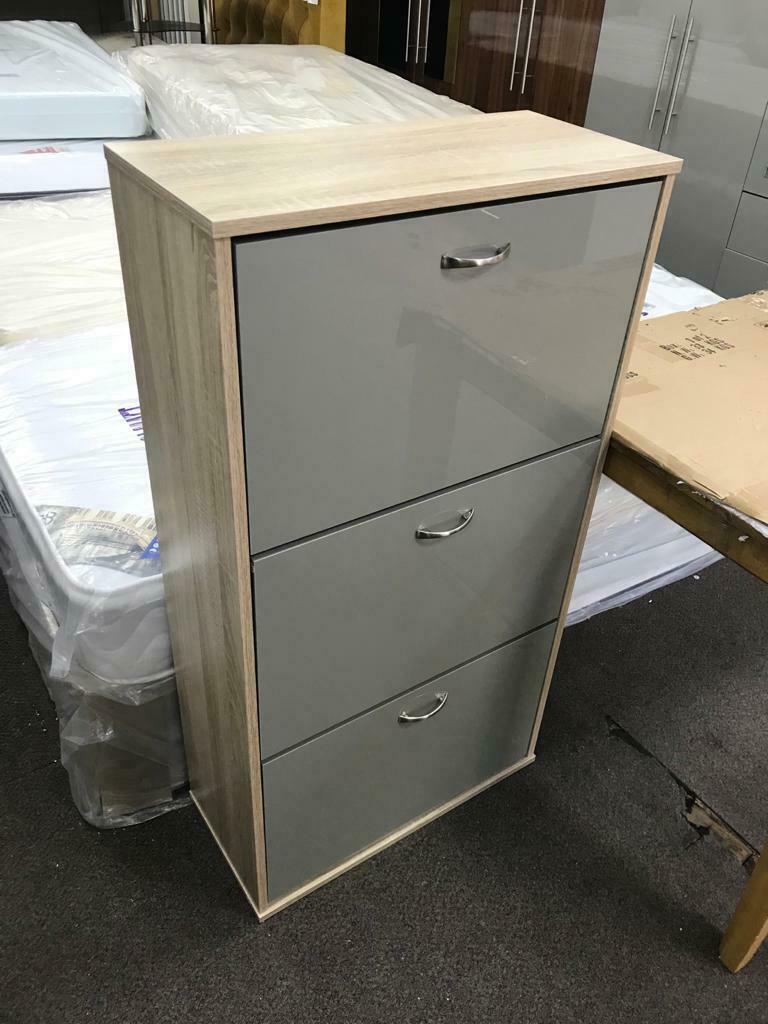 3 DRAWER SHOE CABINET STORAGE CUPBOARD FOOTWEAR STAND UNIT GREY
