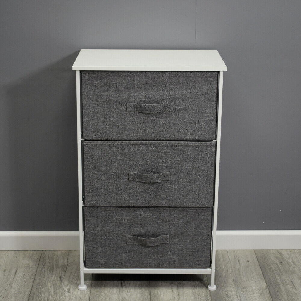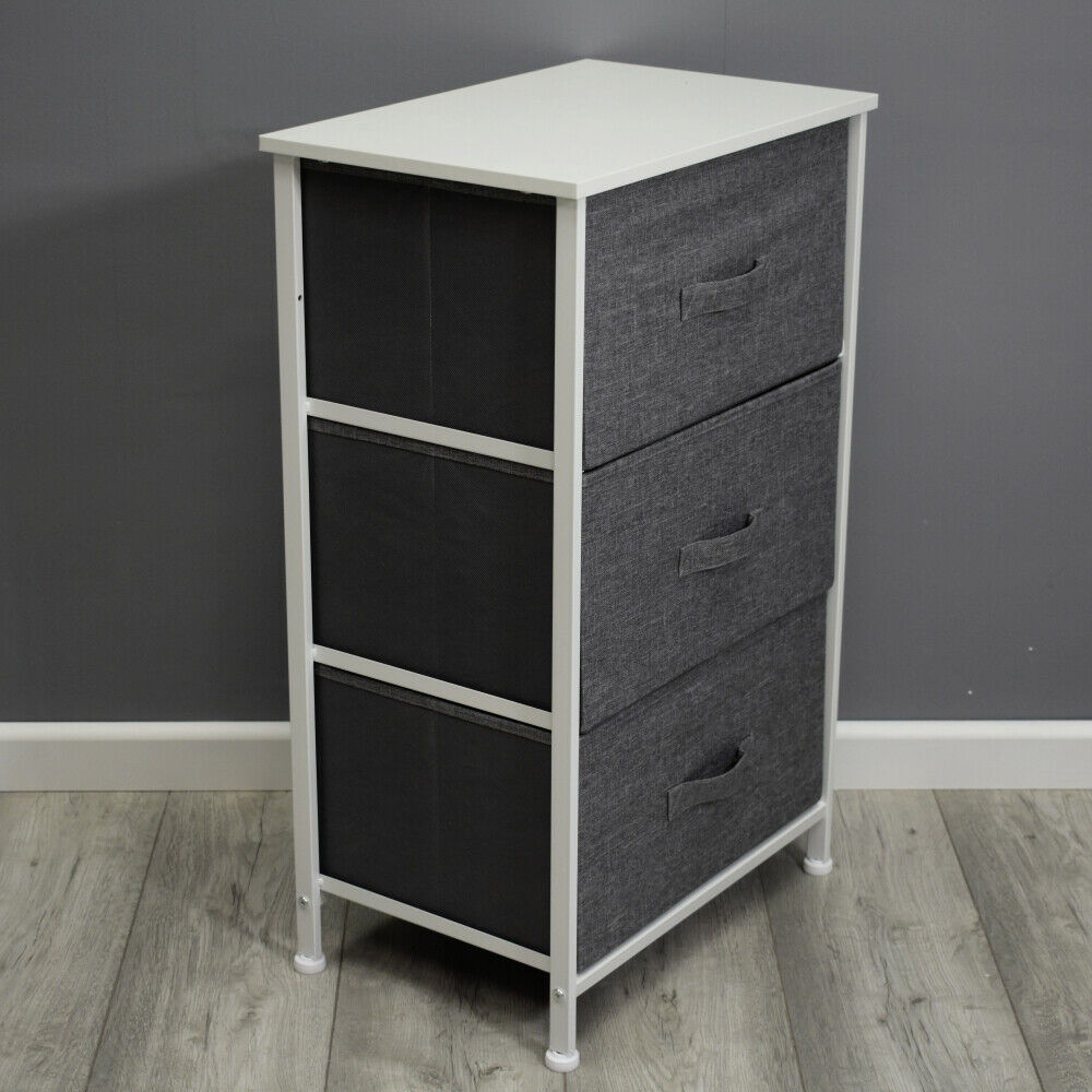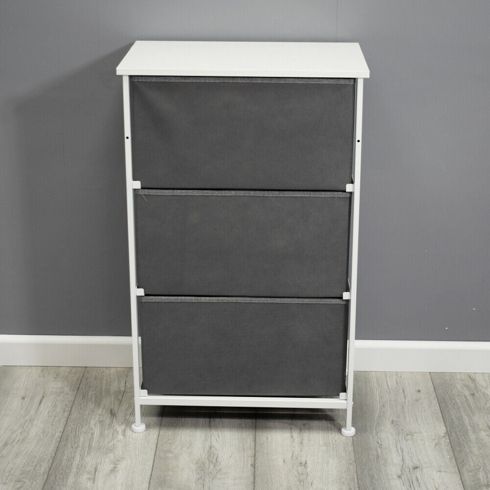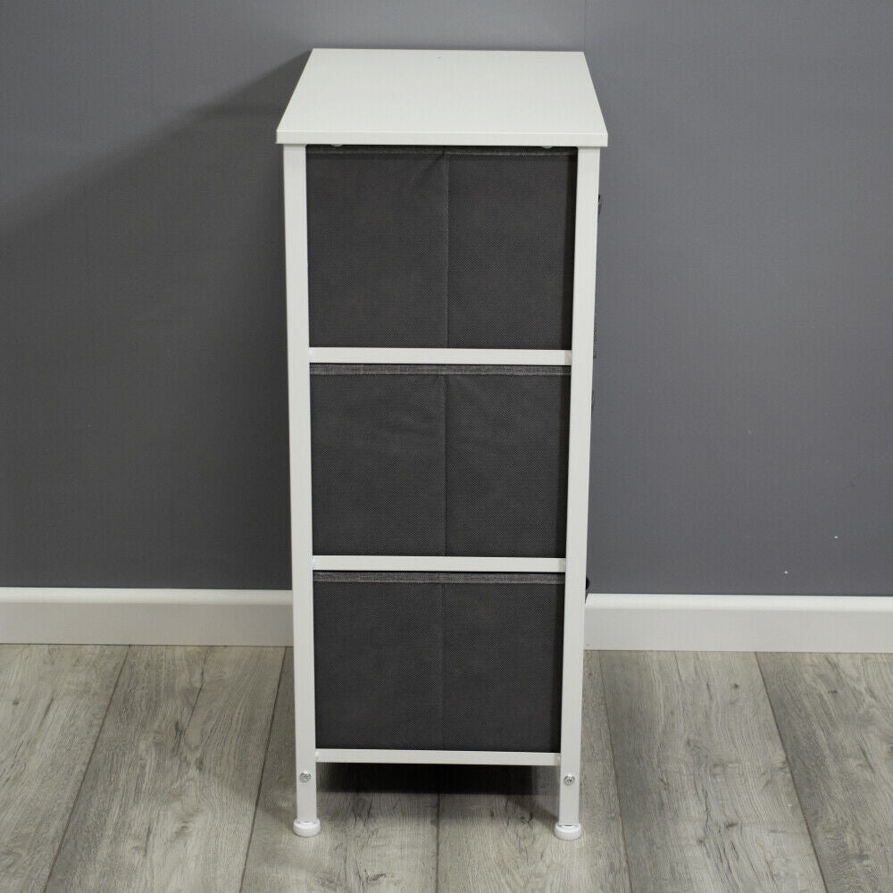 3 Drawer Storage Chest Office Bathroom Bedside Cabinet Linen Front Grey White