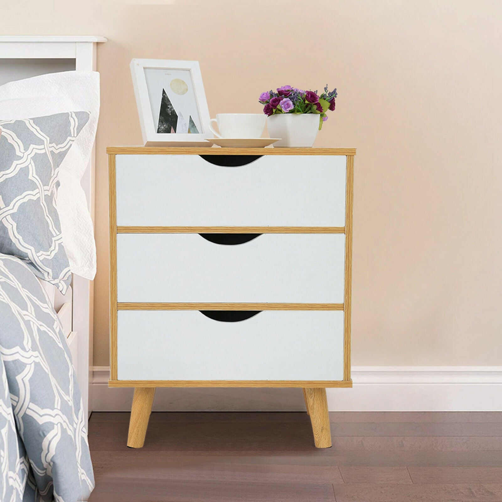 3 Drawer Wooden Bedroom Bedside Cabinet Furniture Storage Nightstand Side Tables