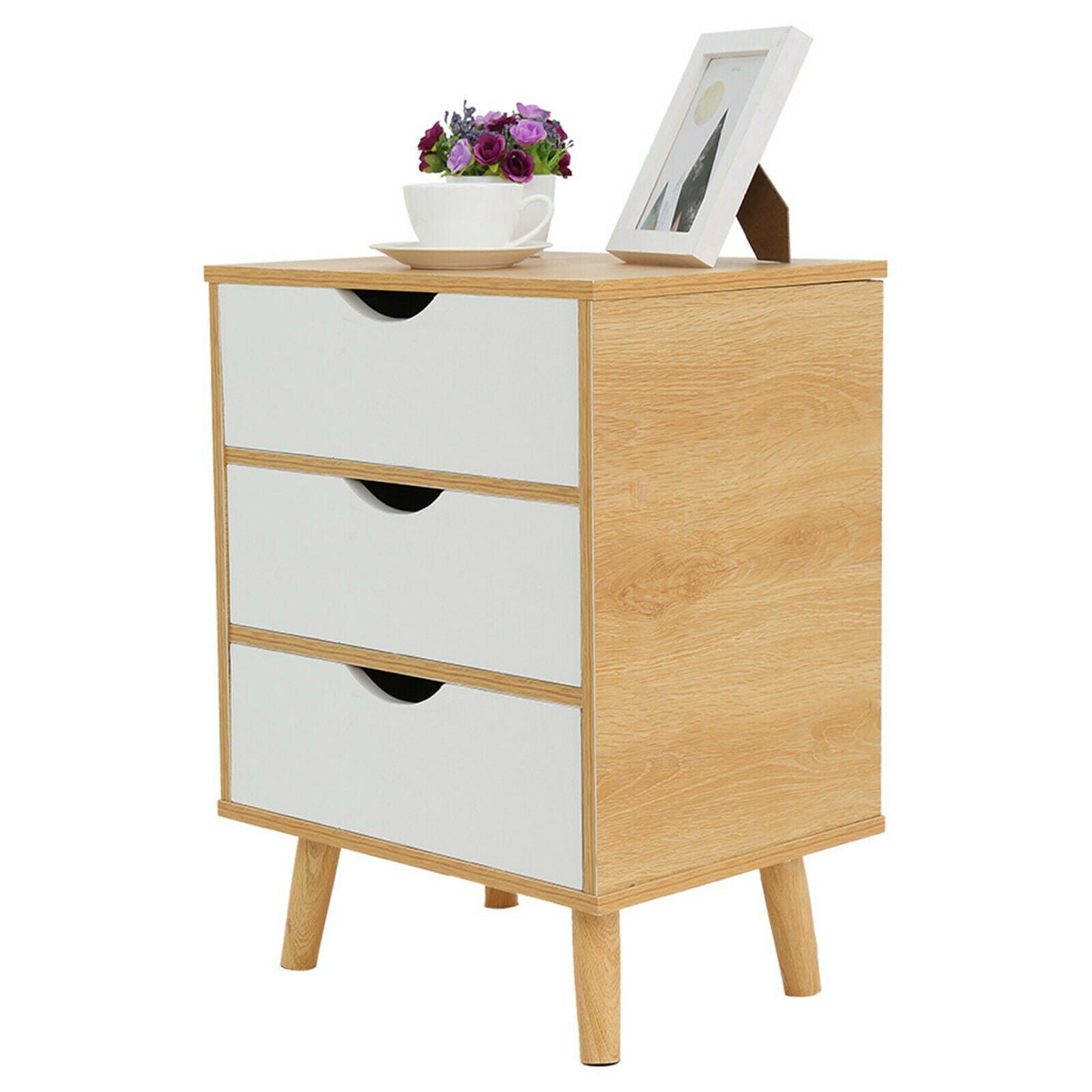 3 Drawer Wooden Bedroom Nightstand Bedside Table Storage Side Cabinet Furniture
