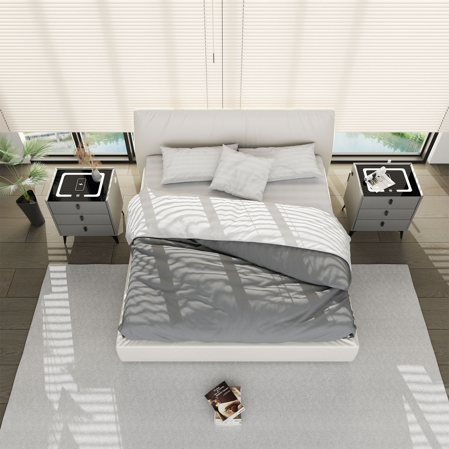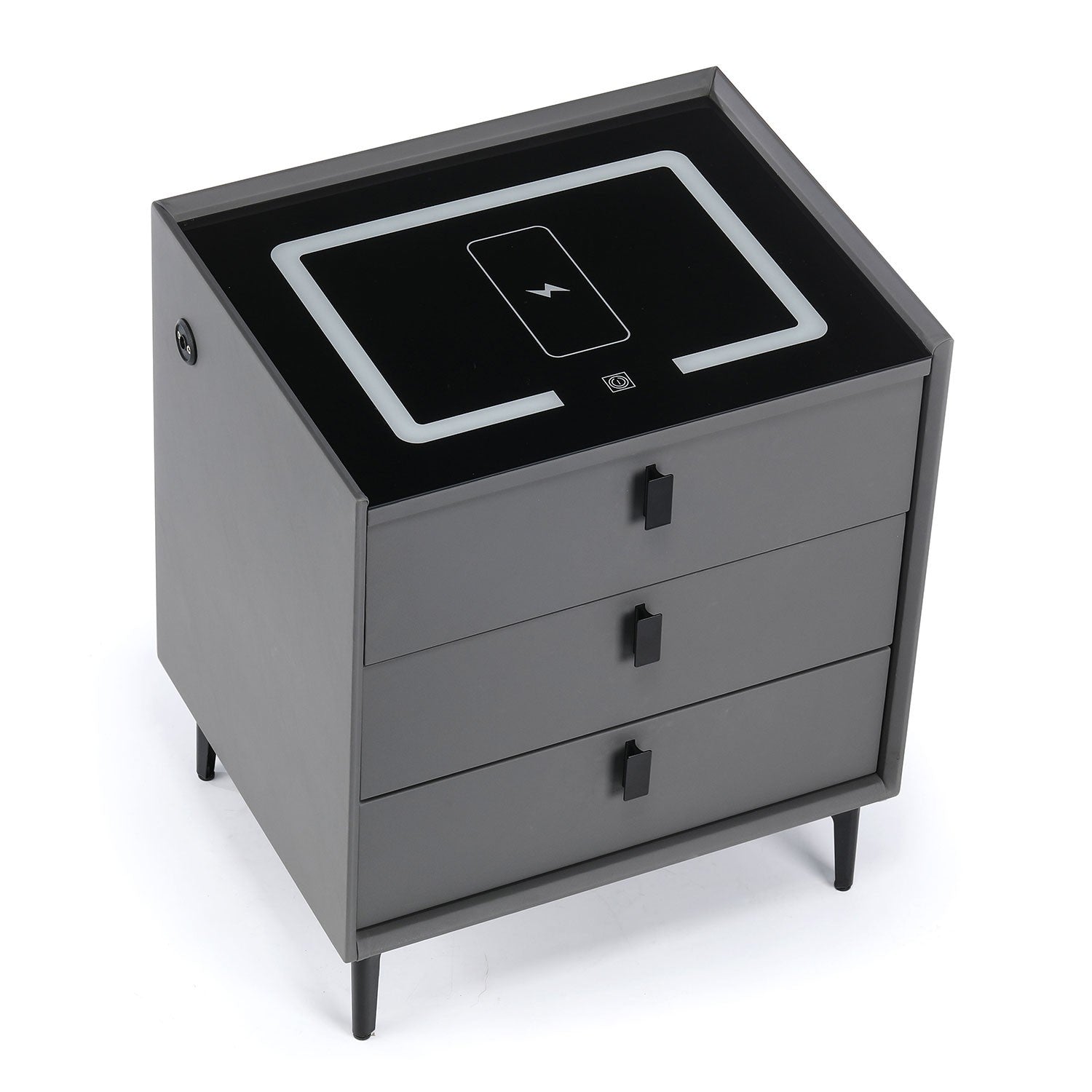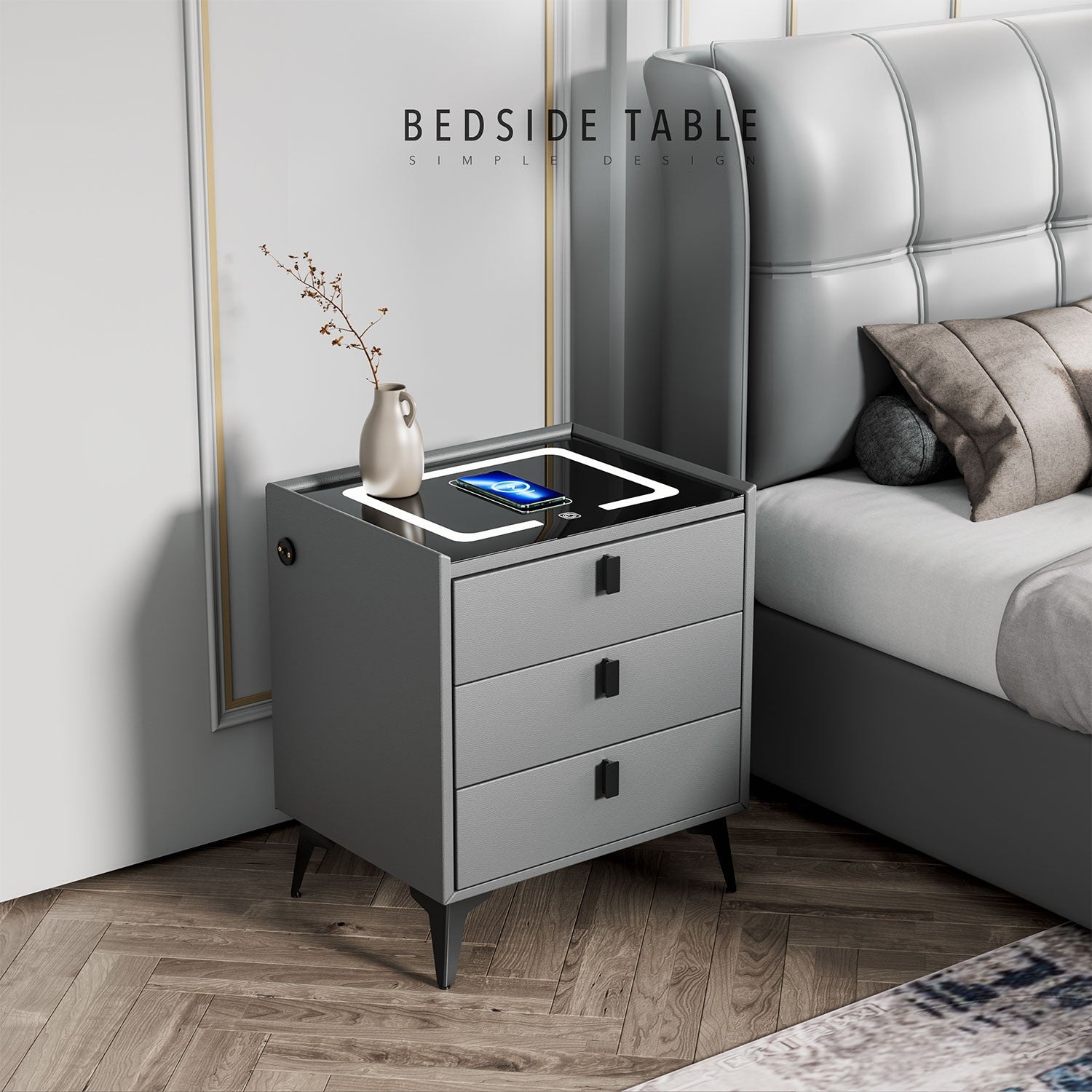 3 Drawers LED Bedside Table Wireless Charging Nightstand Bedside Cabinet Modern