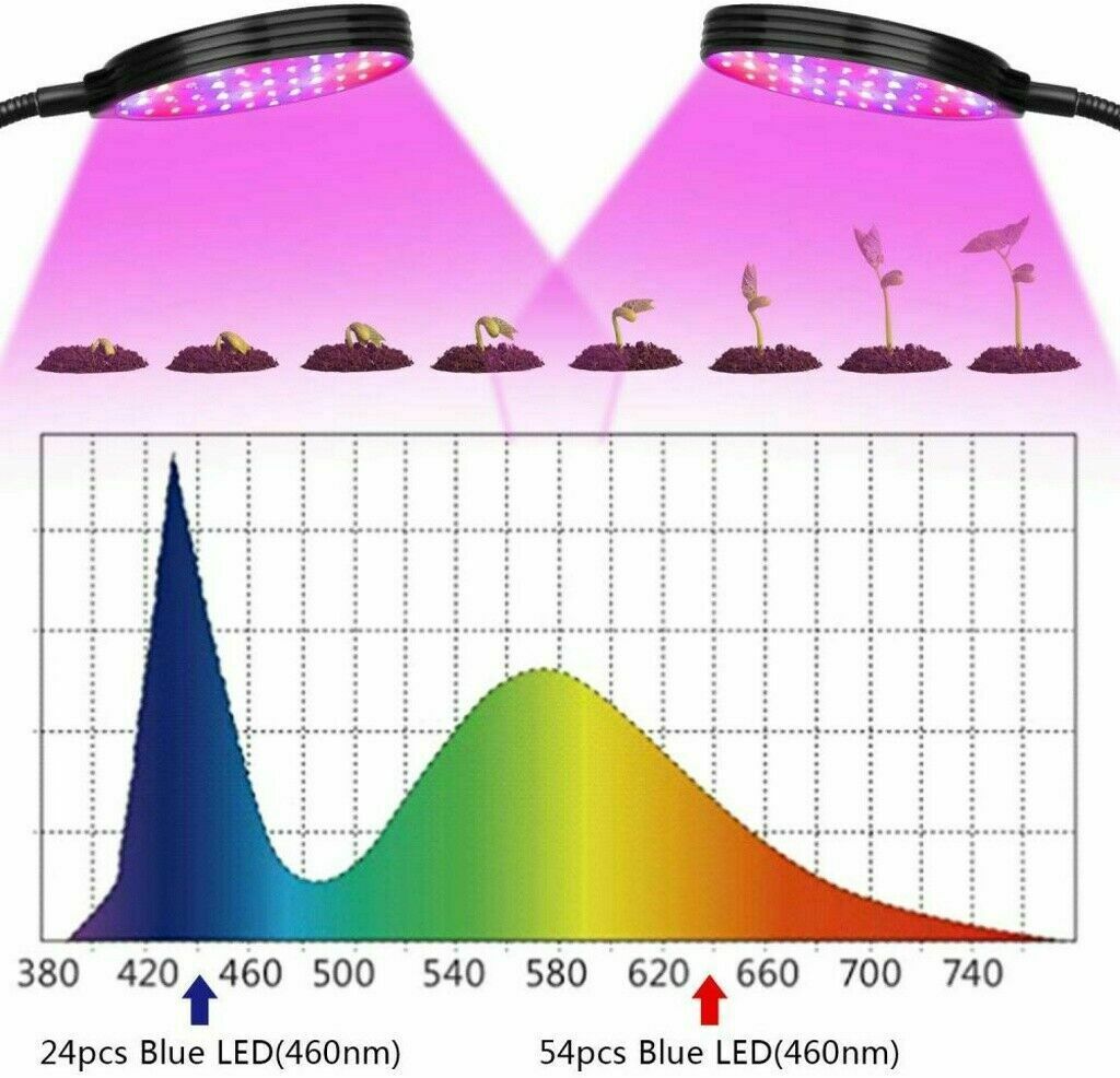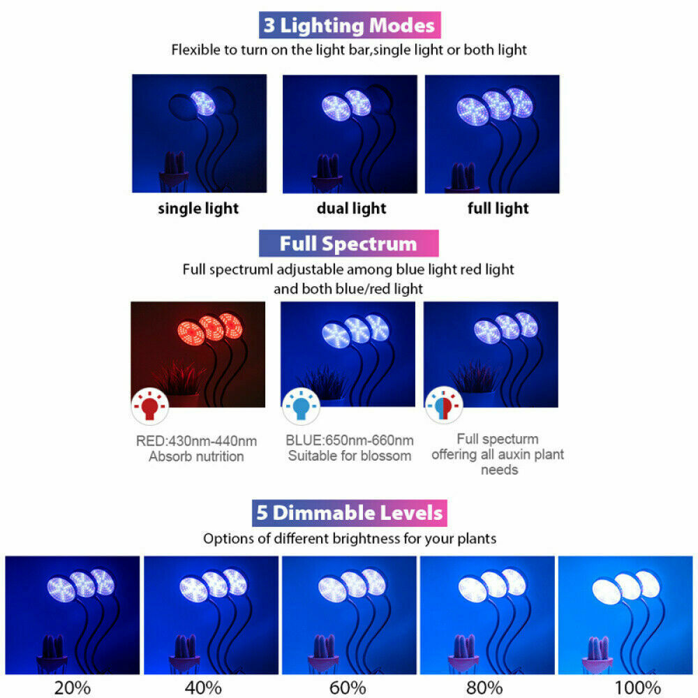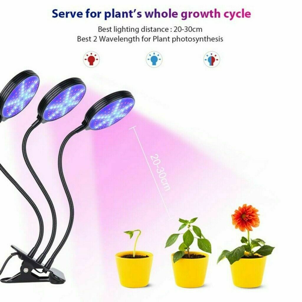3 Head 45W LED Grow Light Growing Veg Flower Indoor Clip-on Plant Lamp UK Plug-