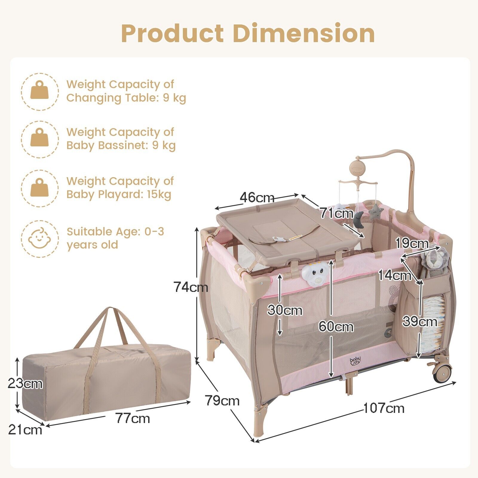 3 in 1 Baby Crib Bassinet Bed Infant Changing Table Foldable Toddler Playpen