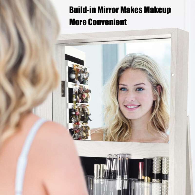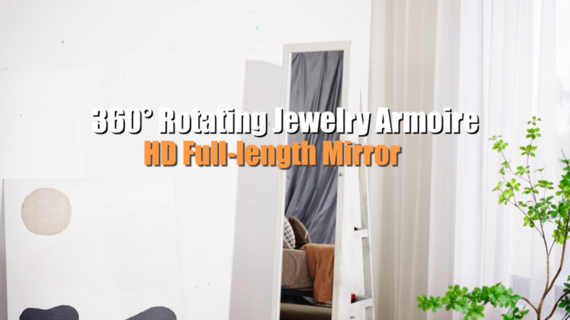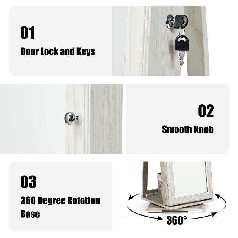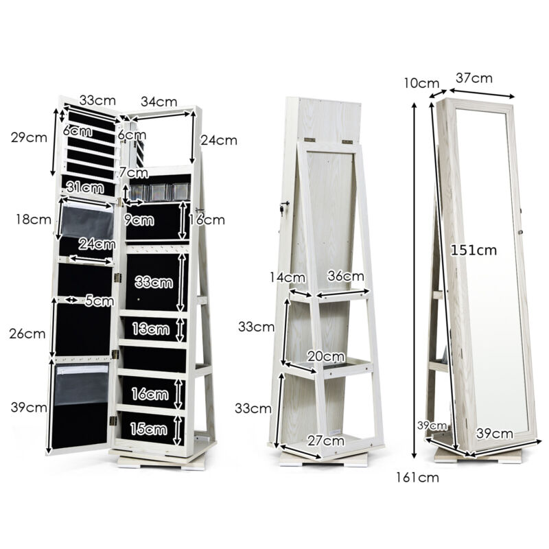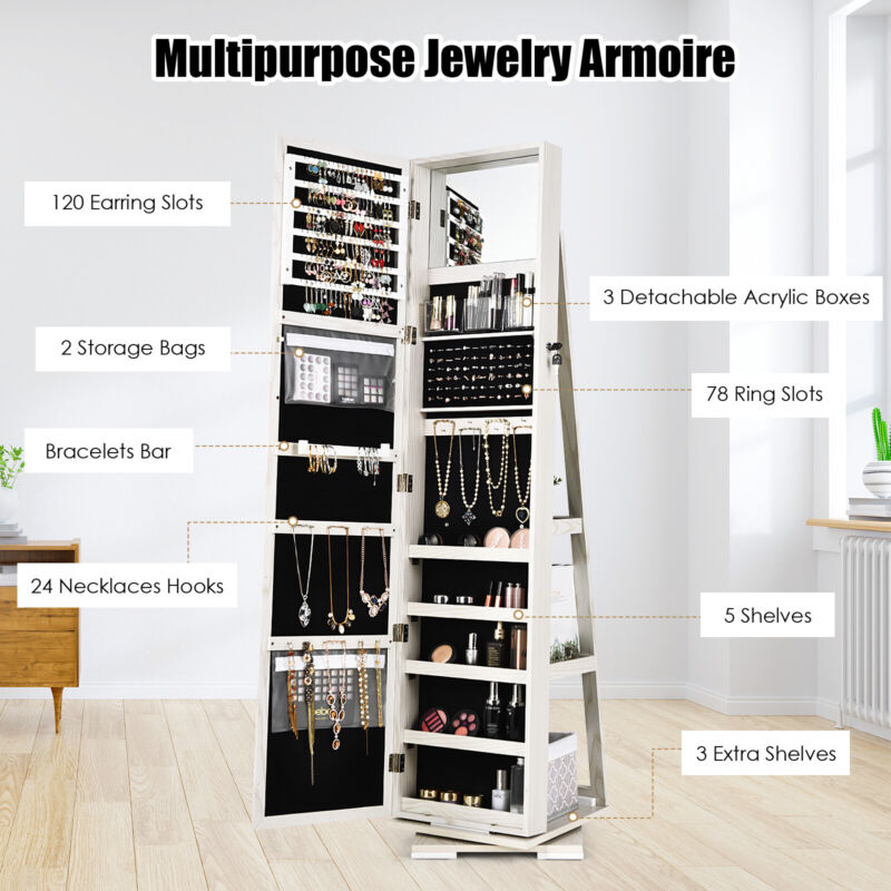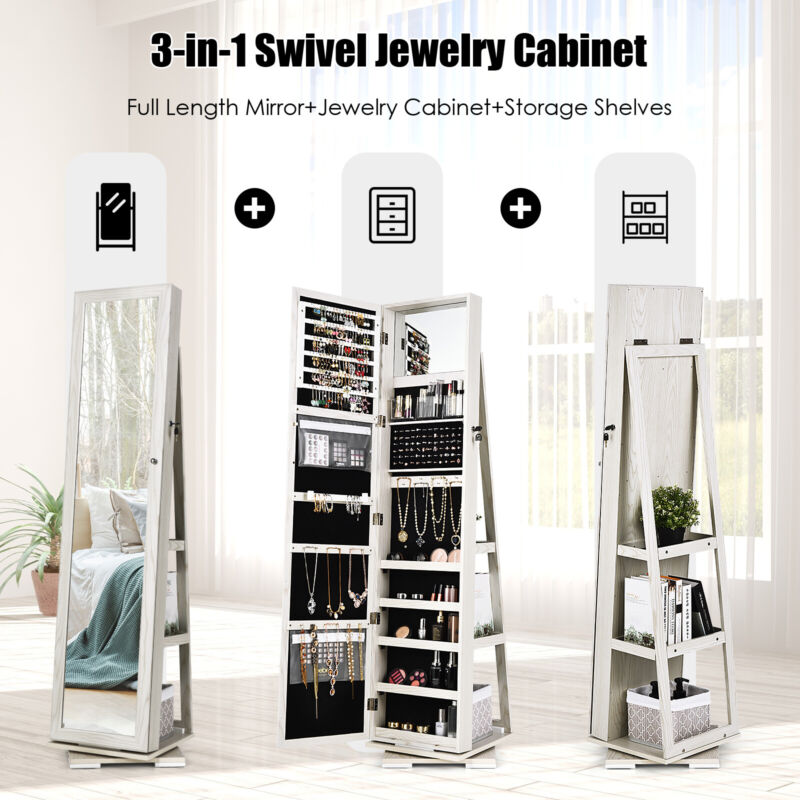 3-in-1 Jewelry Cabinet 360° Swivel Mirrored Jewelry Armoire W/ Display Shelves