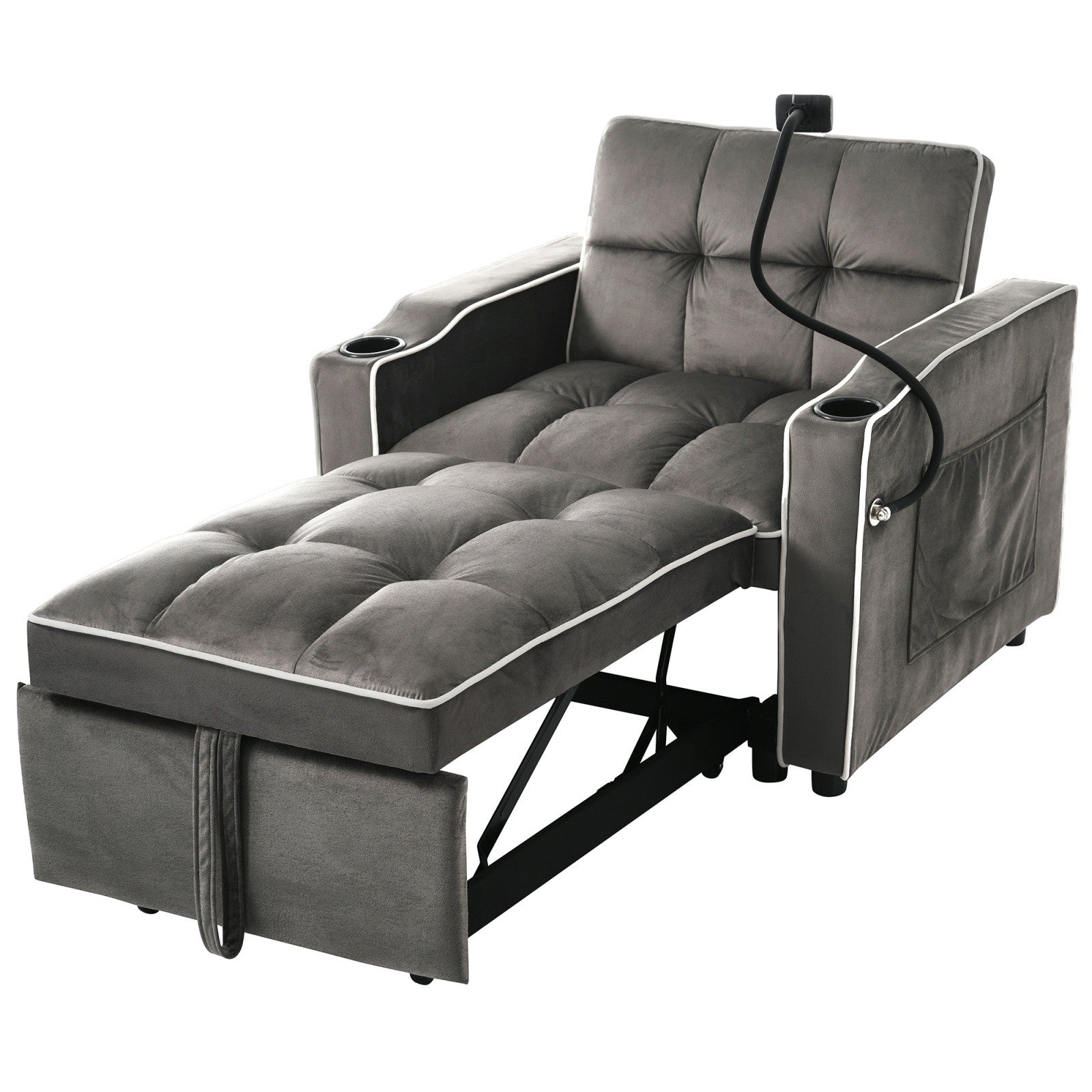 3 IN 1 SOFA BED, CONVERTIBLE SLEEPER CHAIR BED WITH CUP HOLDERS & PHONE HOLDER