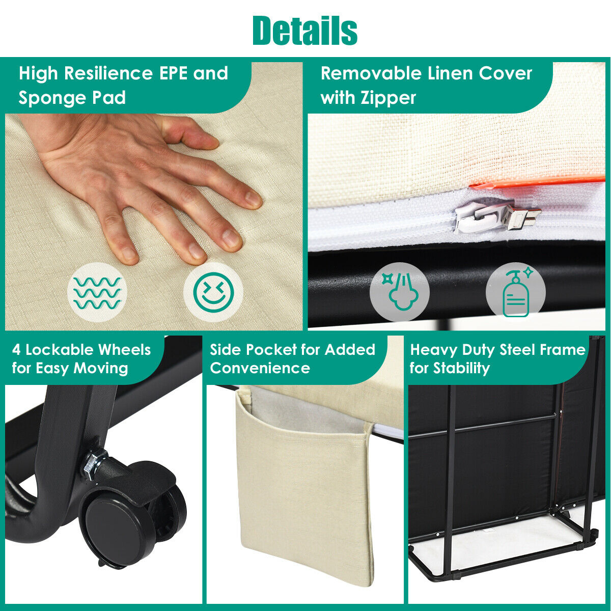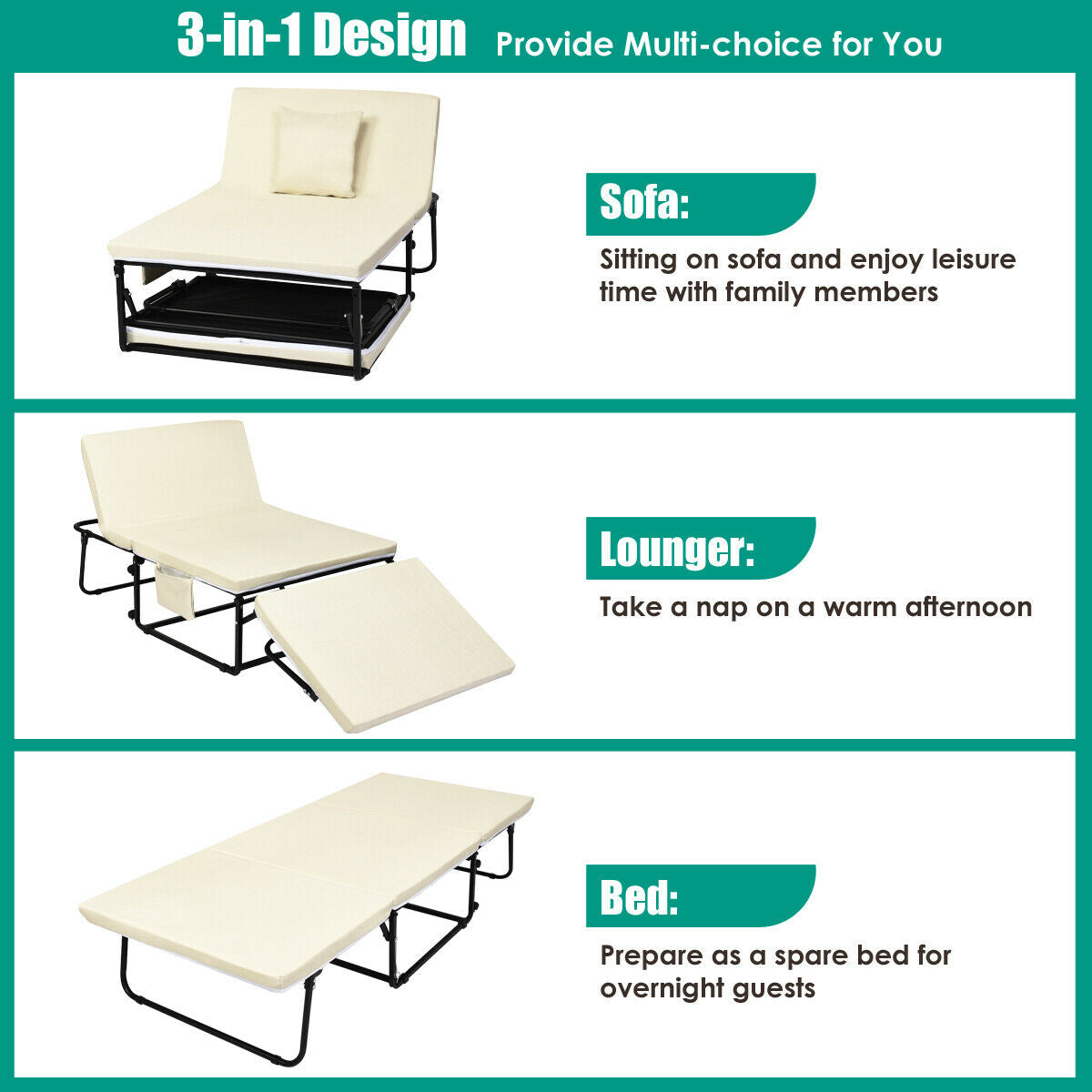 3 IN 1 Sofa Bed Folding Lounge Chair Sleep Convertible Chair Height Adjustable