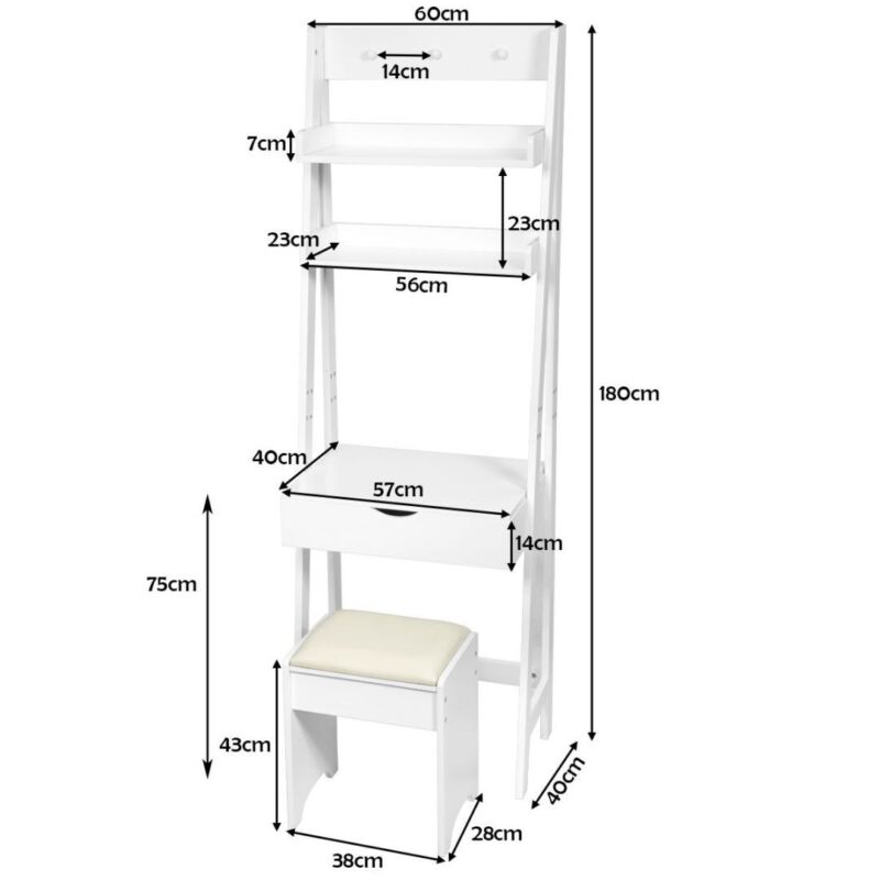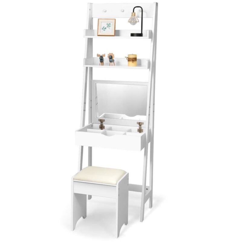 3 IN 1 Vanity Dressing Table Set Book Storage Shelf Ladder Desk W/ Mirror Stool