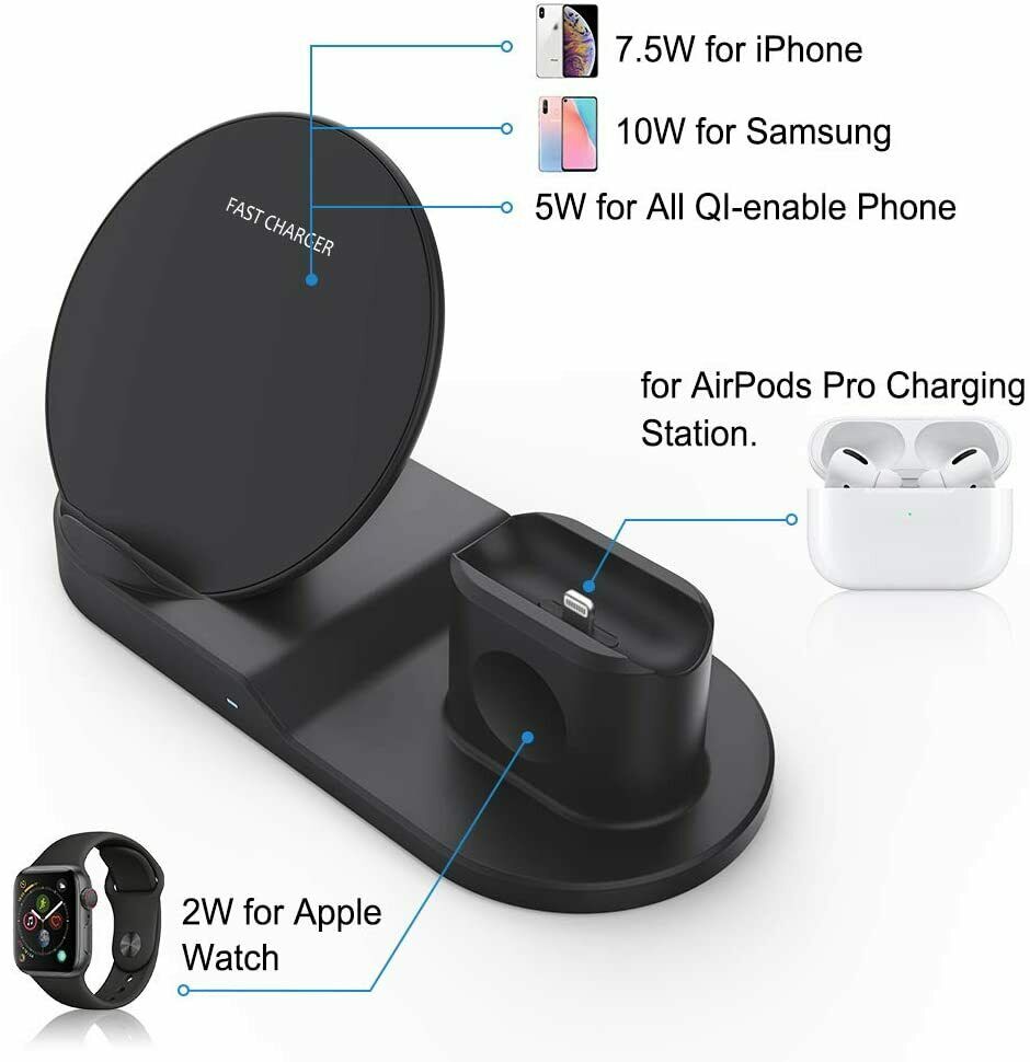 3 in 1 Wireless Charger Stand Charging Dock Stand for iPhone 11 XS XR 8 AirPod