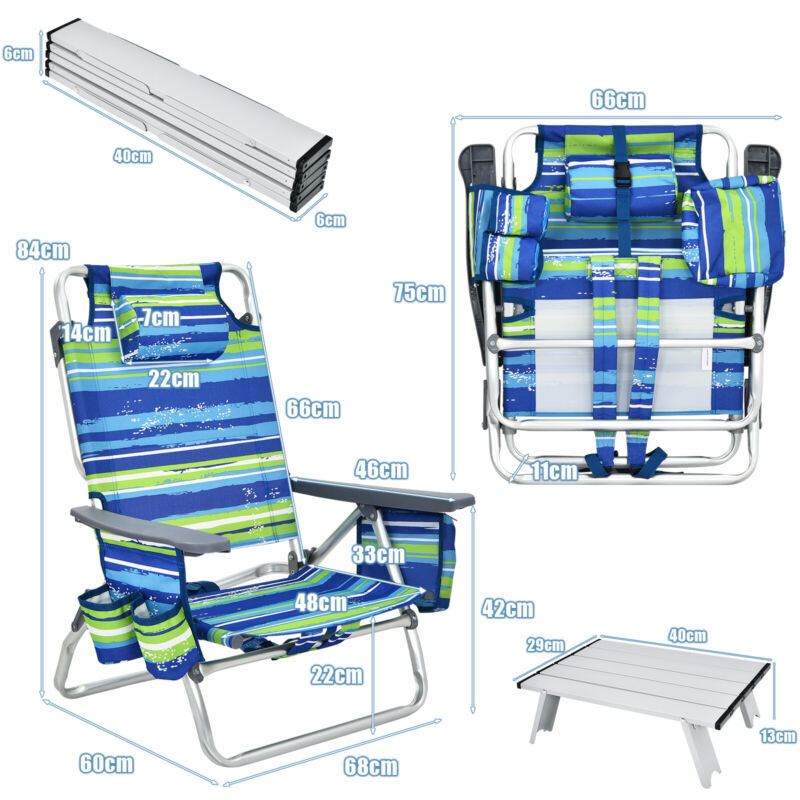 3 PCS Beach Chair and Table Set Outdoor Reclining Chairs Roll Up Camping Table