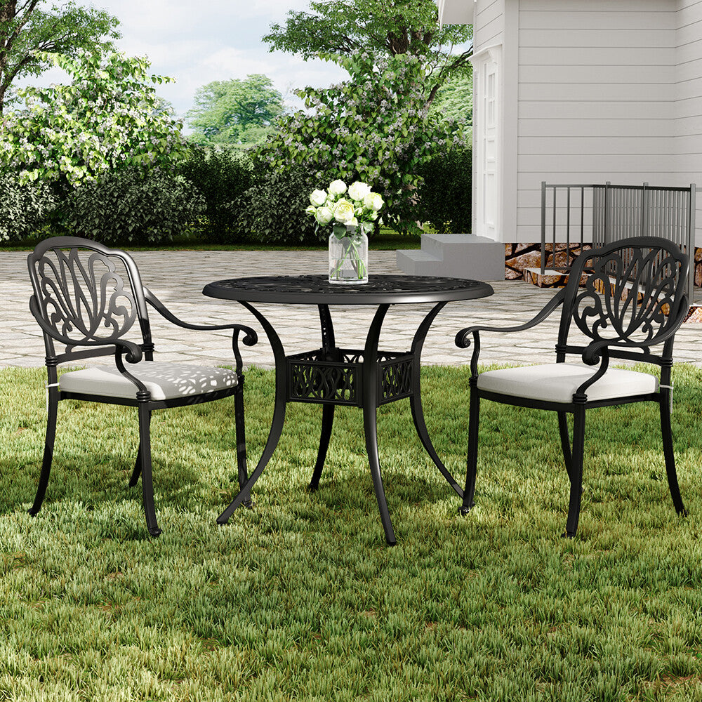 3 Pcs Cast Aluminum Bistro Set Garden Furniture Dining Table Chair Cast Aluminum