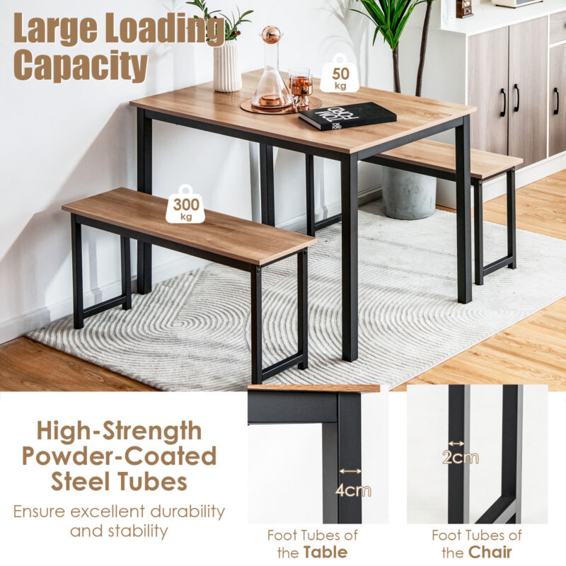 3 PCS Dining Table Set Dining Table & 2 Benches 2-4 Persons W/ Anti-Rust Frame
