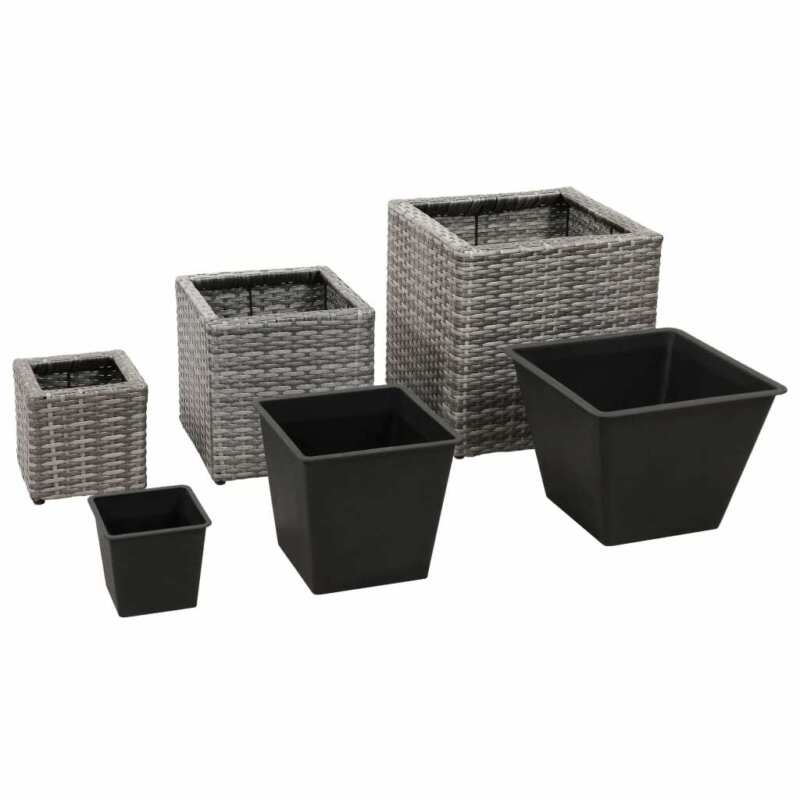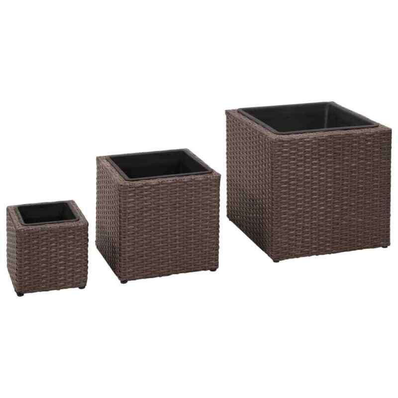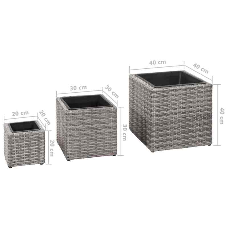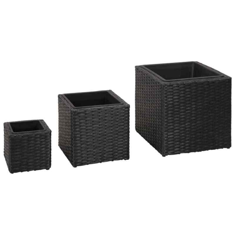 3 Pcs Garden Rattan Planter Pot Set Outdoor Flower Plant Boxes Pots Square
