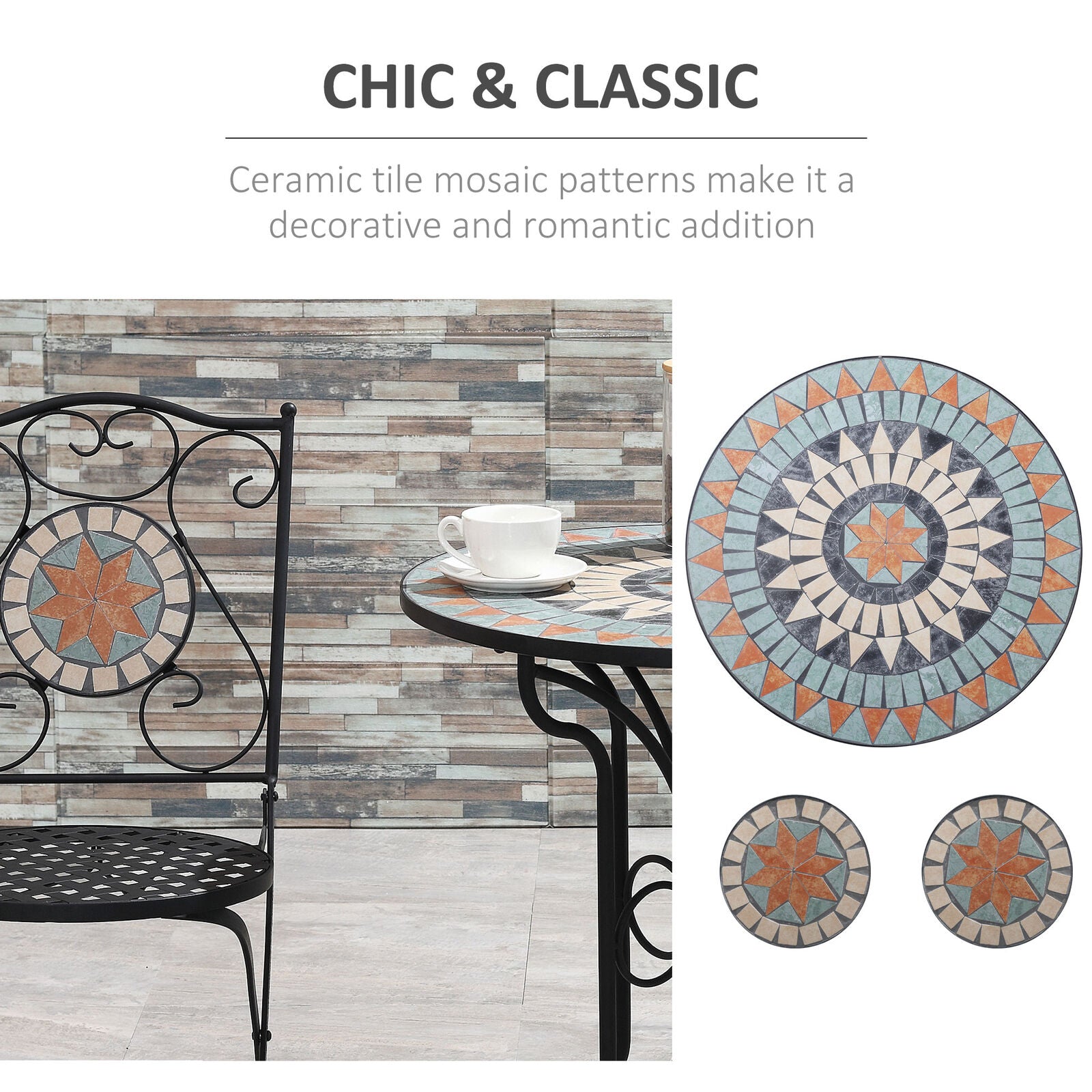 3 Pcs Mosaic Bistro Table Chair Set Patio Garden Dining Furniture