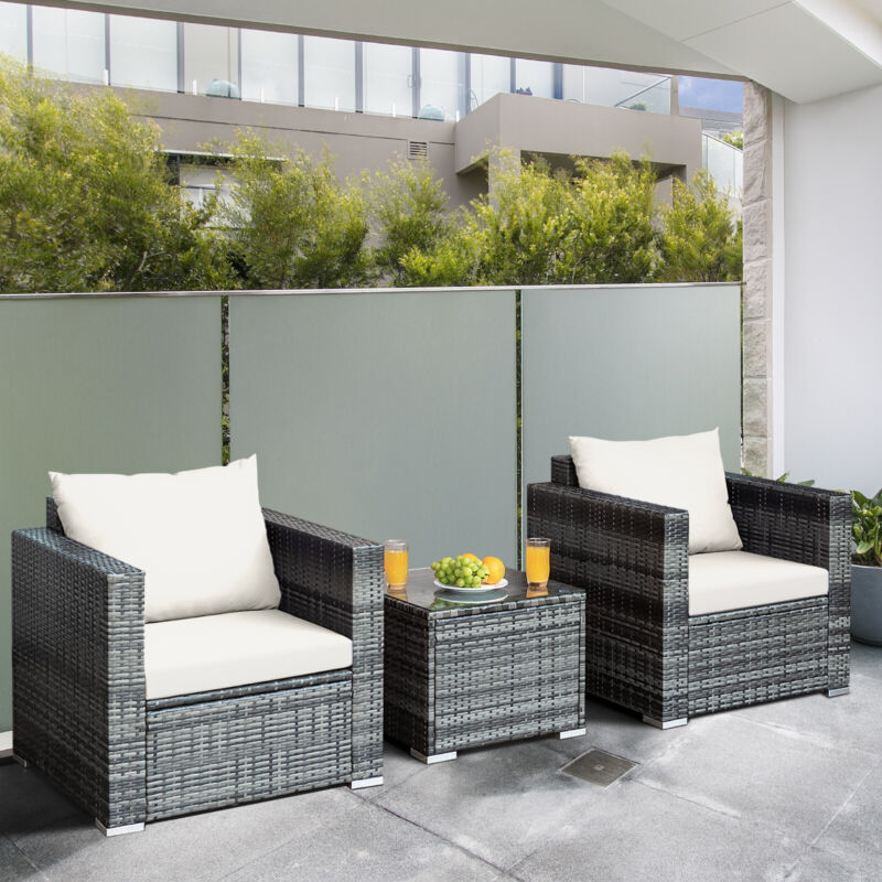 3 PCS Patio Wicker Bistro Set Outdoor Rattan Sofa Set Conversation Furniture